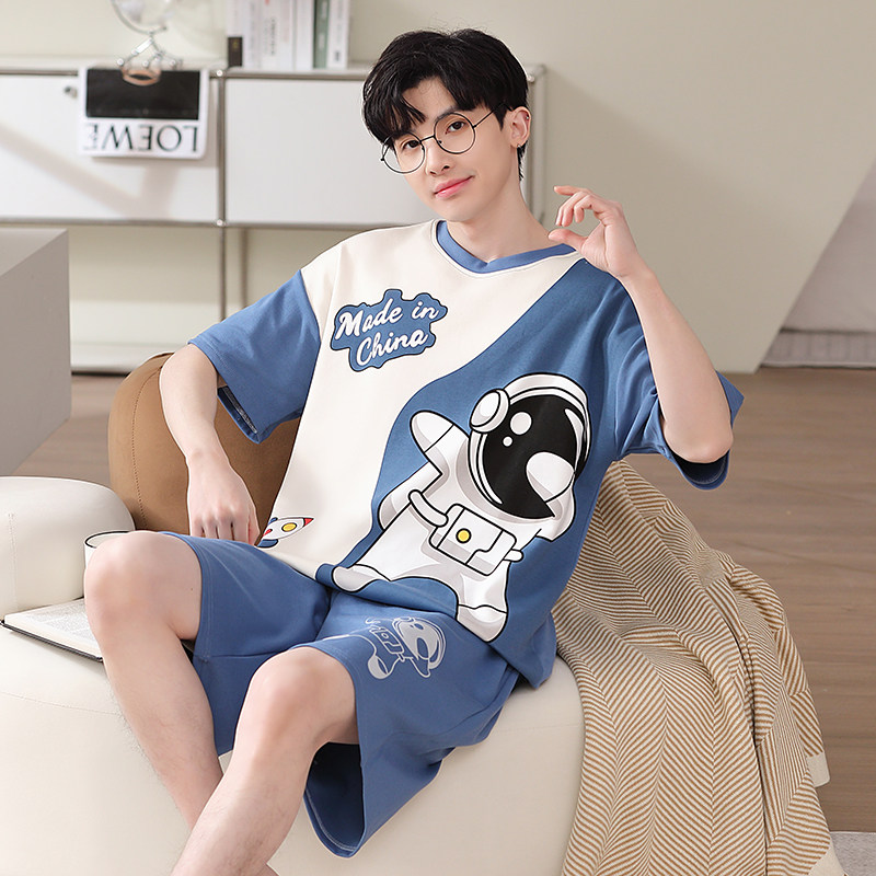 夏季男大童睡衣青少年短袖纯棉男款男童哆啦a梦叮当猫男孩家居服