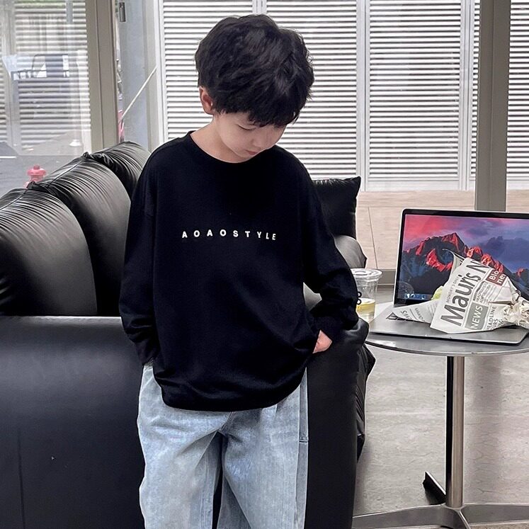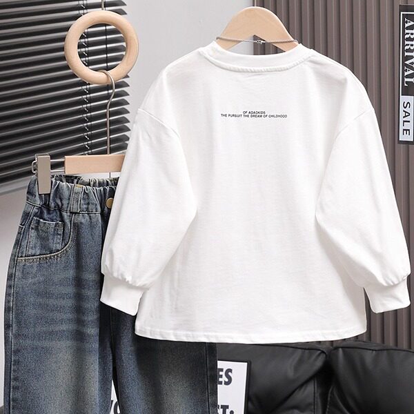 春秋款纯棉儿童长袖打底衫韩版宽松白色休闲百搭男童内搭T恤童装