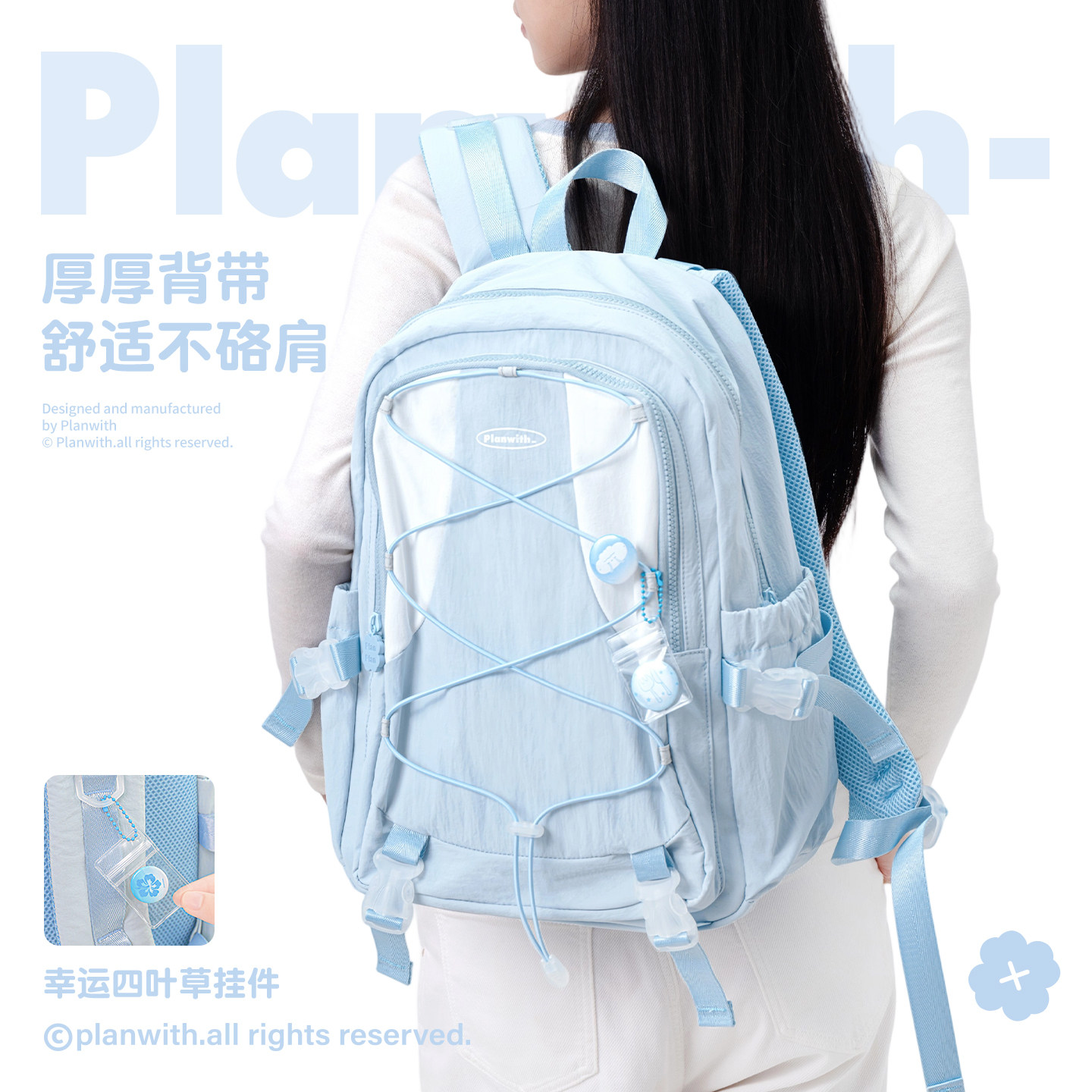 Planwith书包初中女生双肩包小学生高中生背包大容量2026年新款旅游轻便高颜值ins小众高级感电脑包多功能