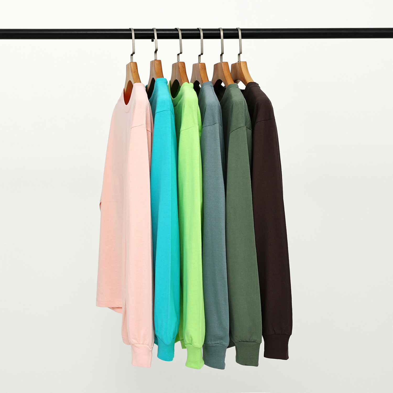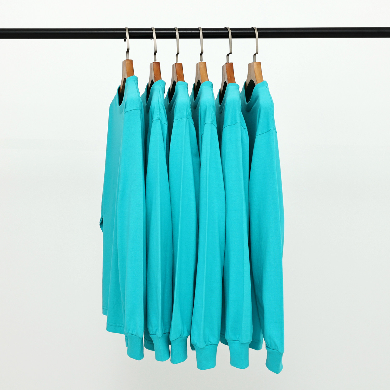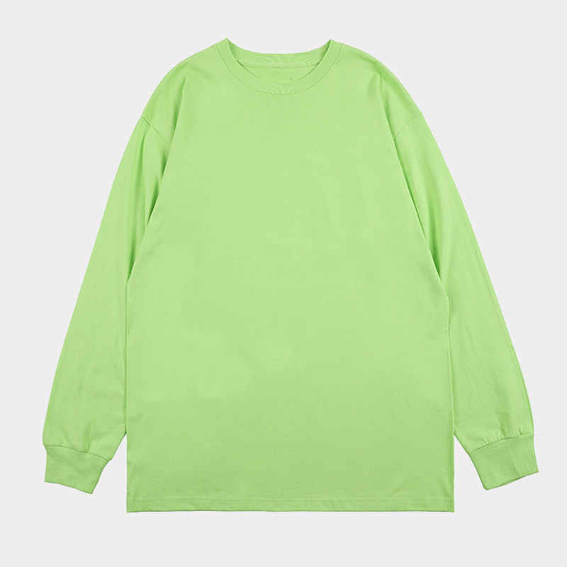 【小白家】浅绿荧光绿250g重磅不透纯棉圆领长袖T恤女男内搭大码