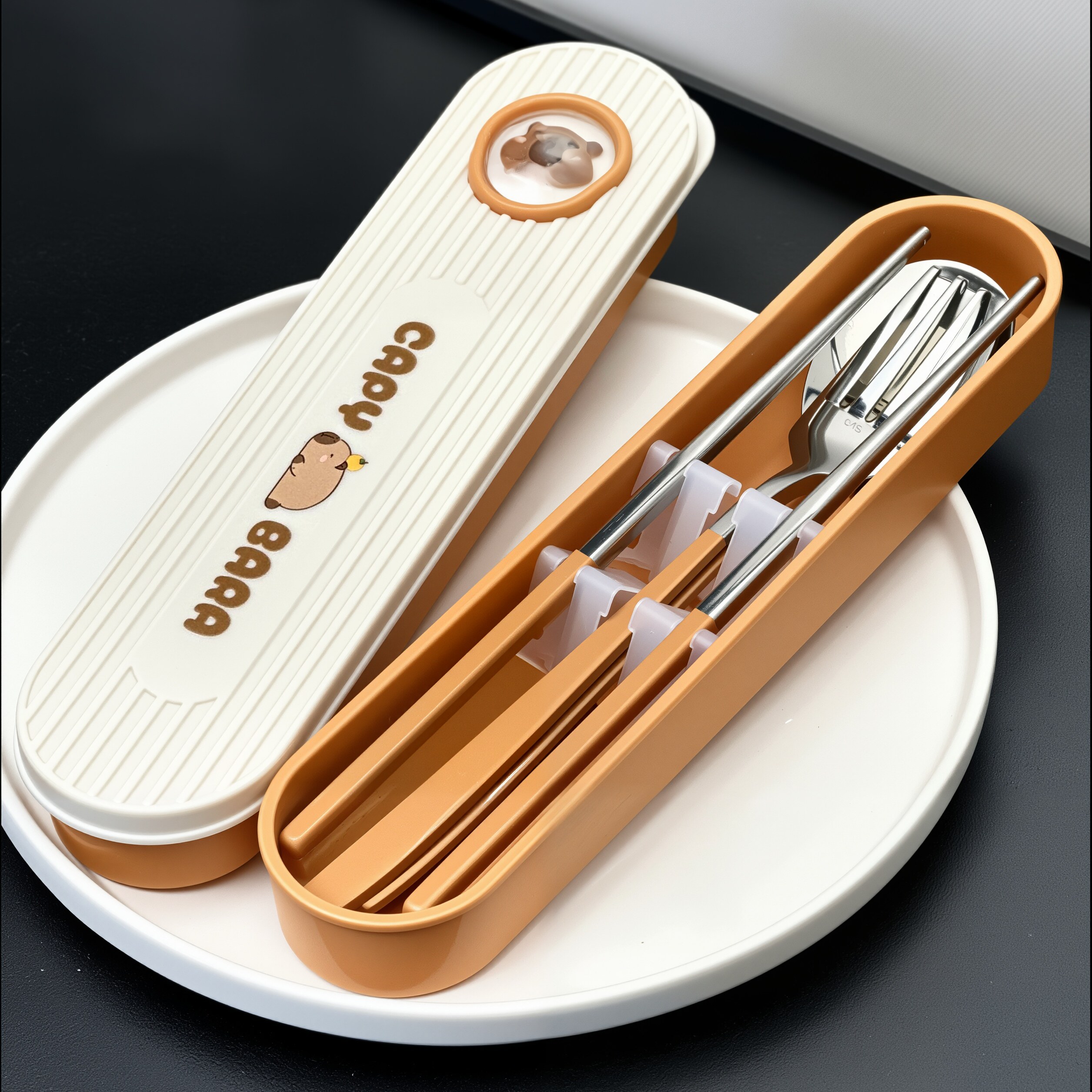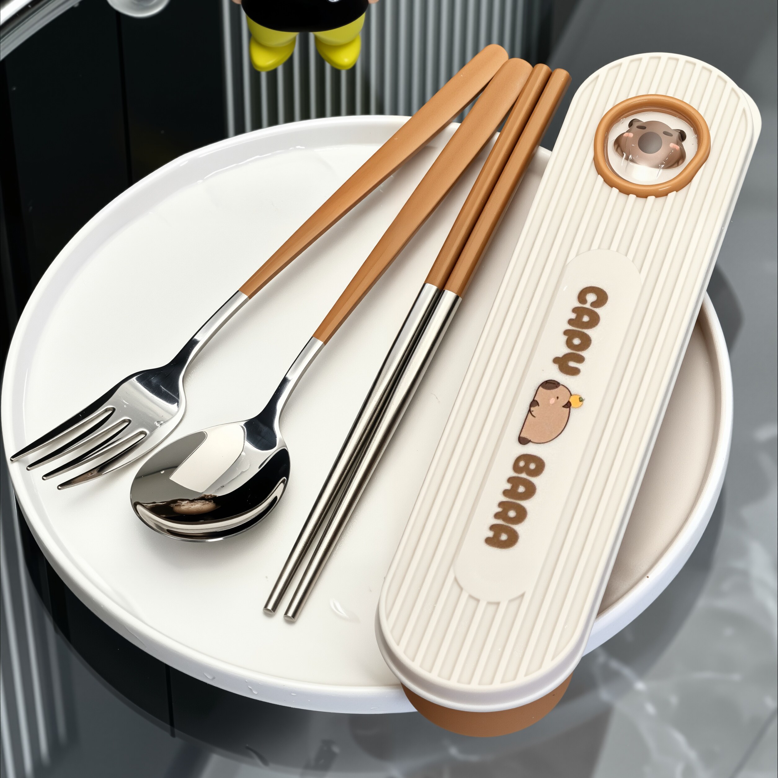 橙北银不锈钢餐具创意筷子勺子叉子上班族学生便携餐具收纳盒防尘