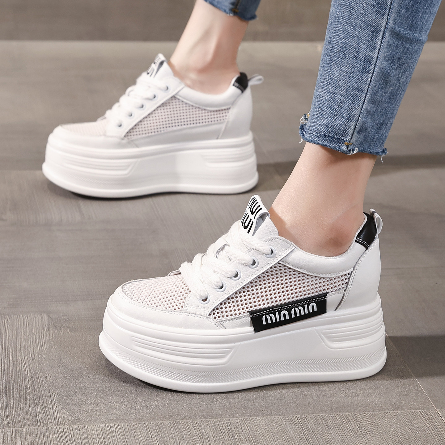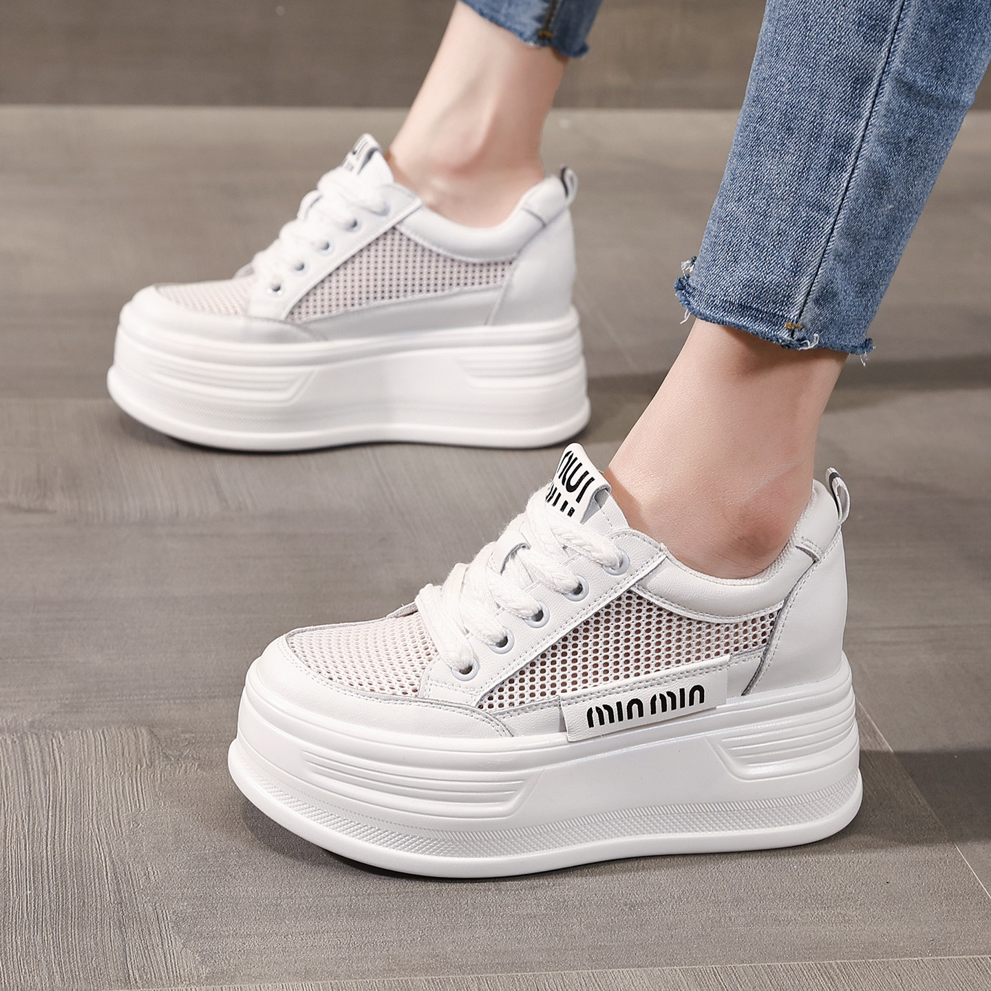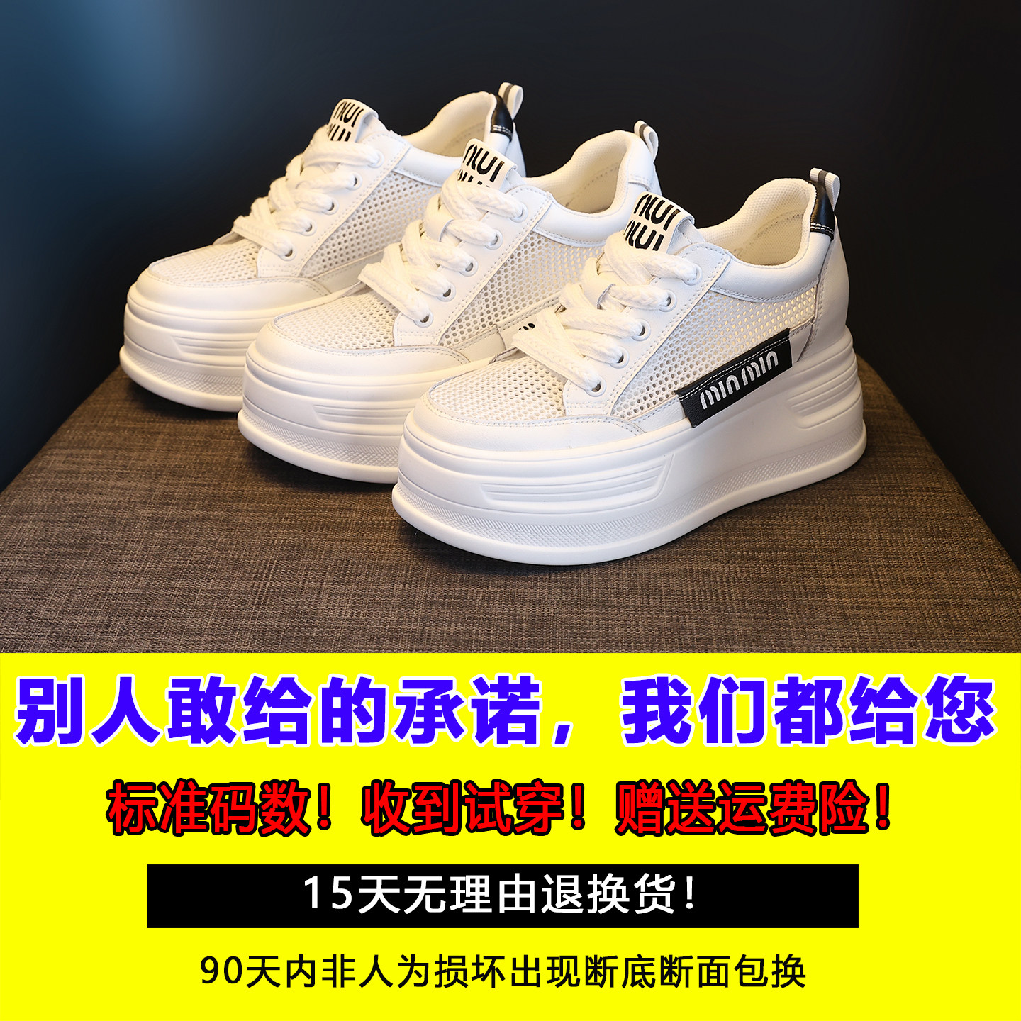 内增高小白鞋女夏季薄款2026新款百搭厚底小个子网面透气休闲板鞋