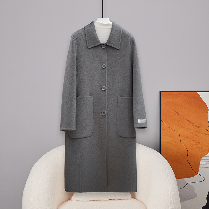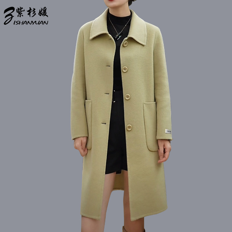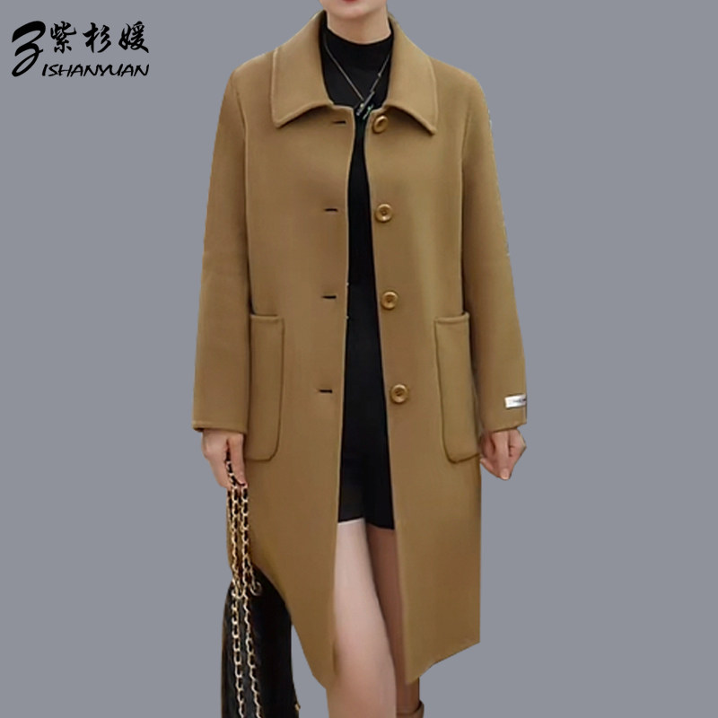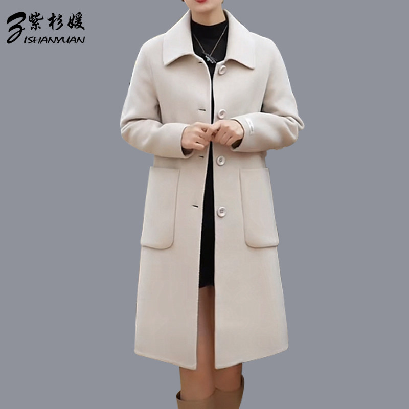 高贵气质绵羊毛呢外套中年女士妈妈秋冬新款双面呢大衣中长款洋气