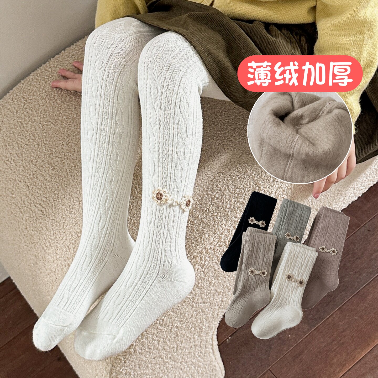 女童打底裤春秋款外穿中厚儿童秋冬季白色配裙子宝宝薄绒连裤袜