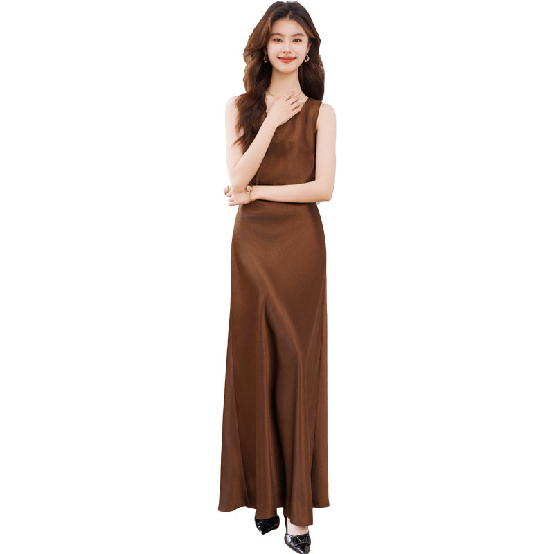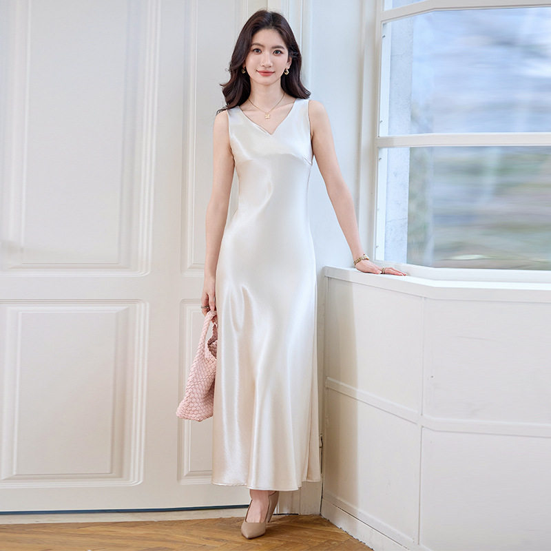法式吊带连衣裙女夏季高端醋酸缎面无袖内搭名媛气质修身显瘦长裙
