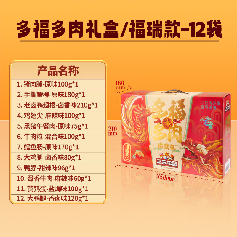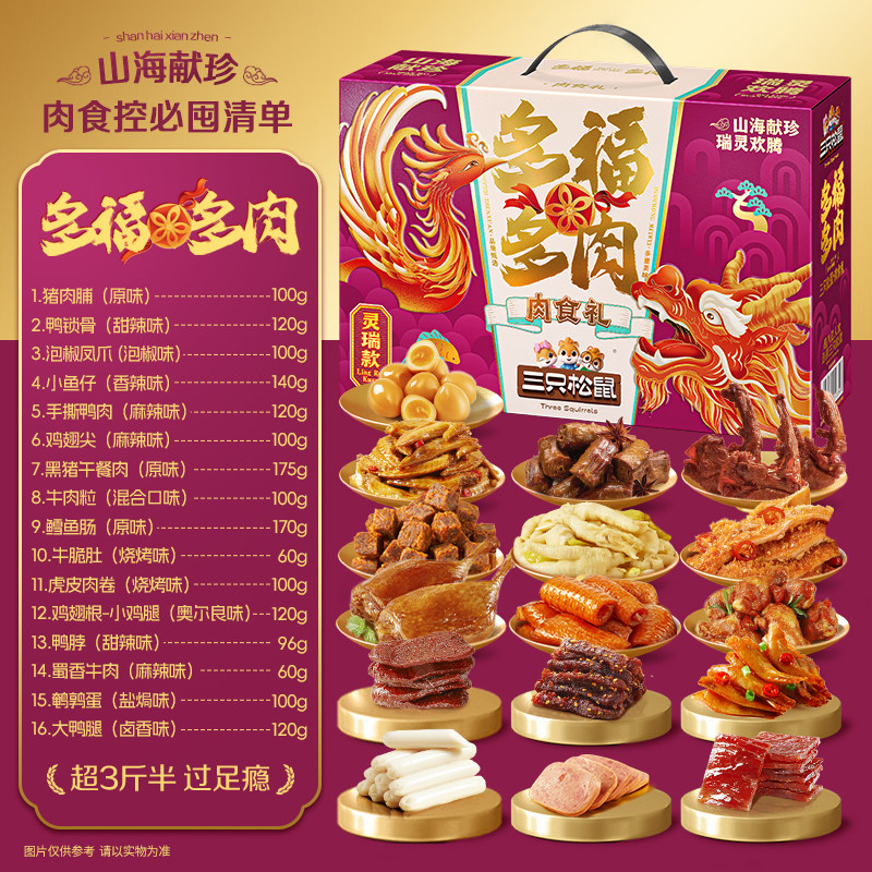三只松鼠_全肉类零食大礼包牛肉干鸡爪送礼肉食礼盒休闲零食小吃