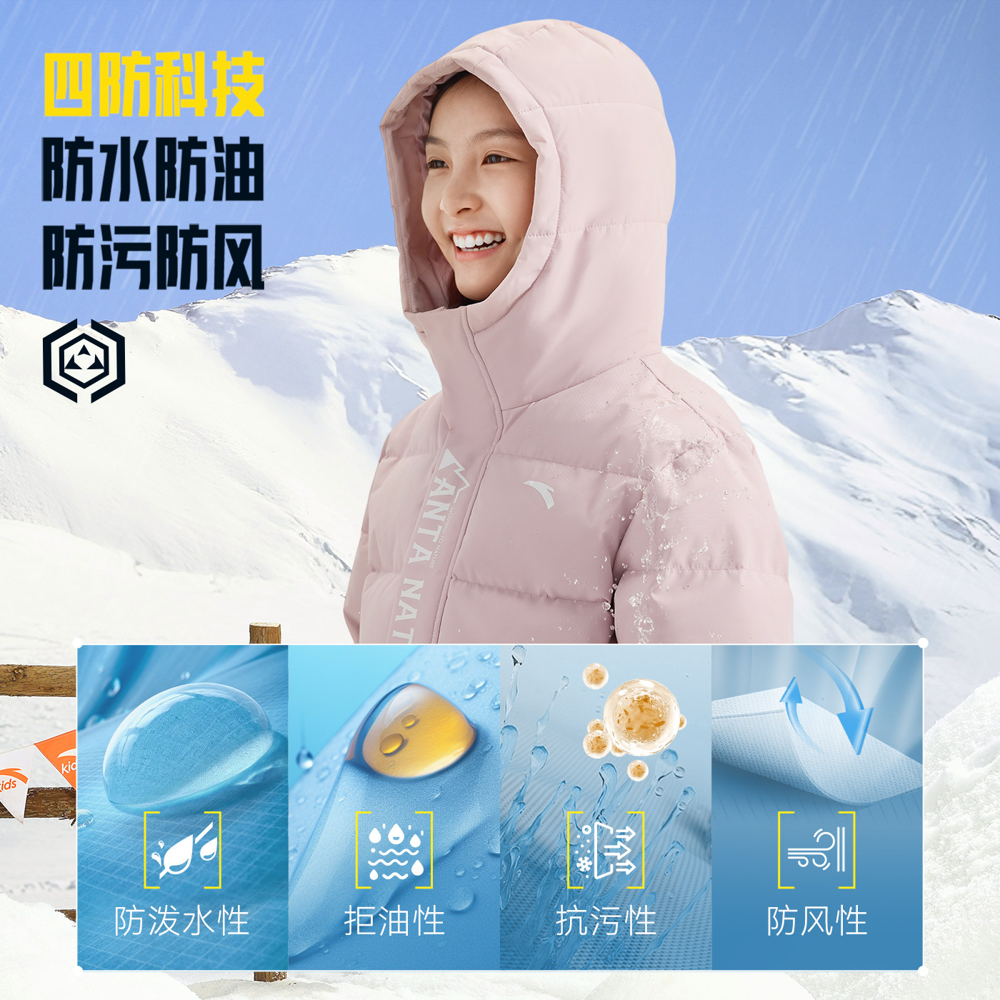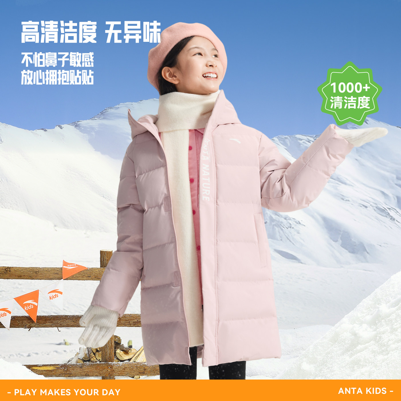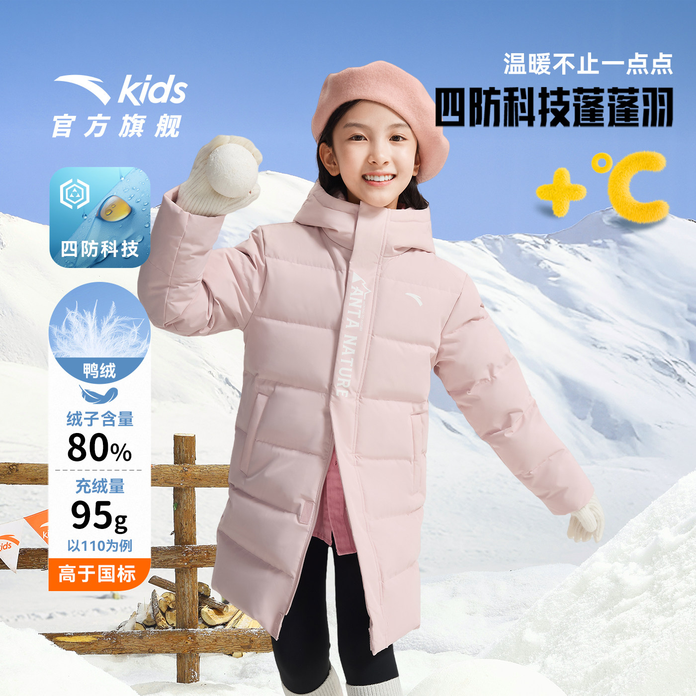 蓬蓬羽安踏儿童女童中长羽绒服2026年冬季新款保暖连帽四防厚外套