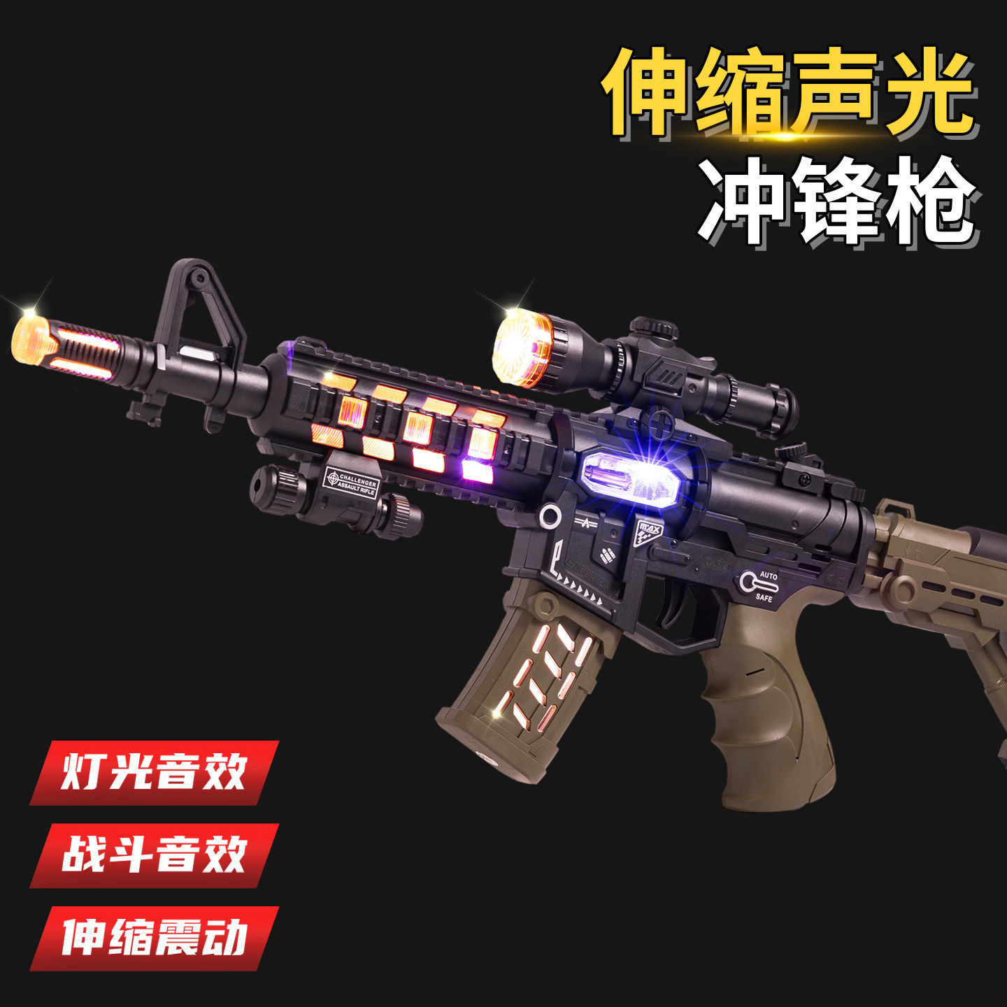 儿童玩具枪男孩1到3岁6电动仿真声光冲锋枪机关2手枪4三宝宝男童5