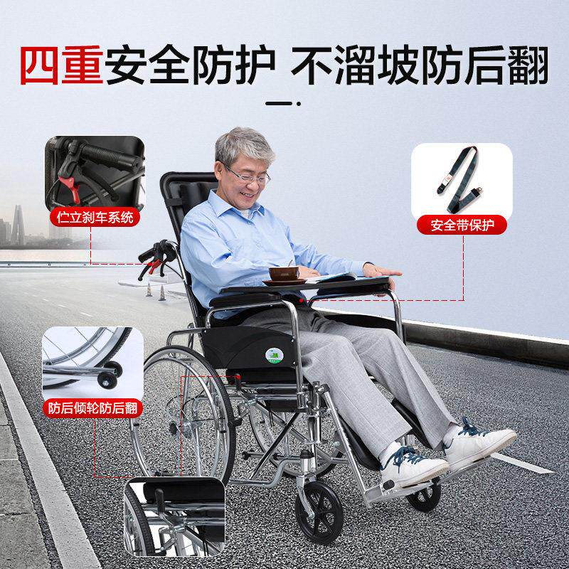 国家补贴】轮椅带坐便器便盆老人手推车折叠轻便可坐可躺瘫痪洗澡