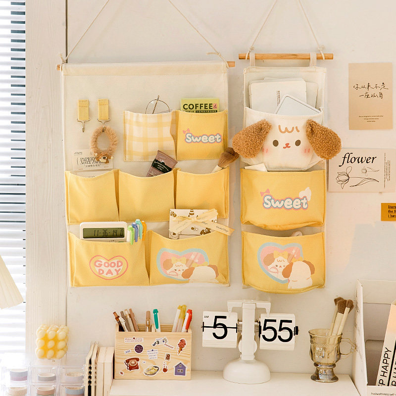 布艺收纳挂袋悬挂式可爱大学生宿舍整理用品大全置物袋床头置物架