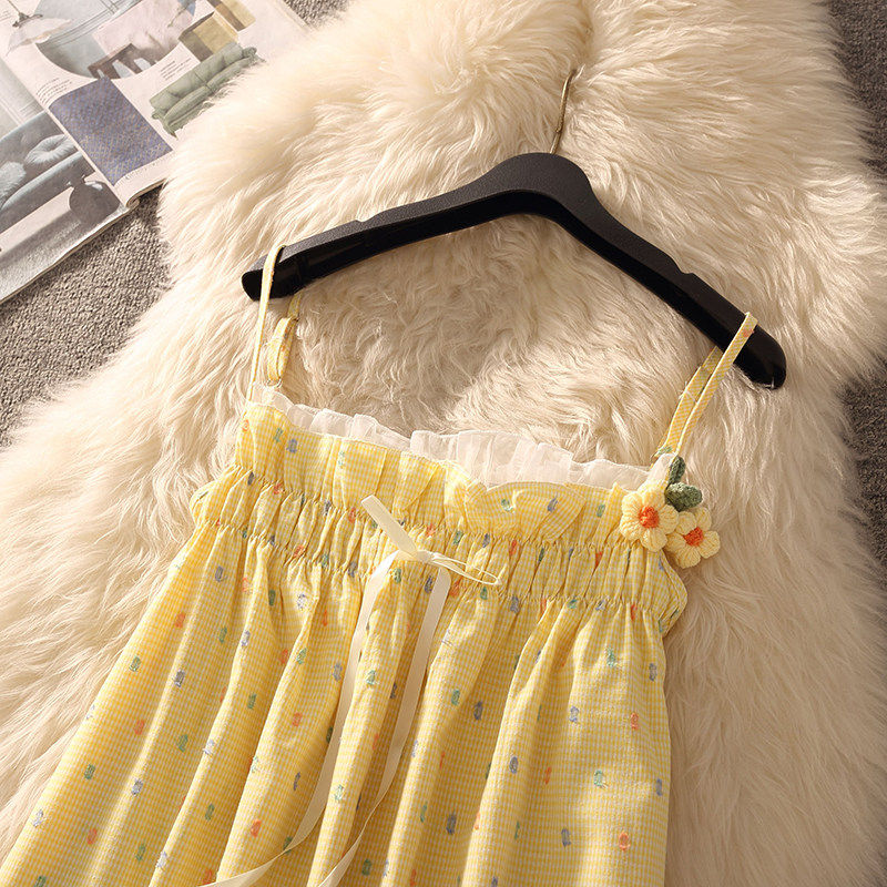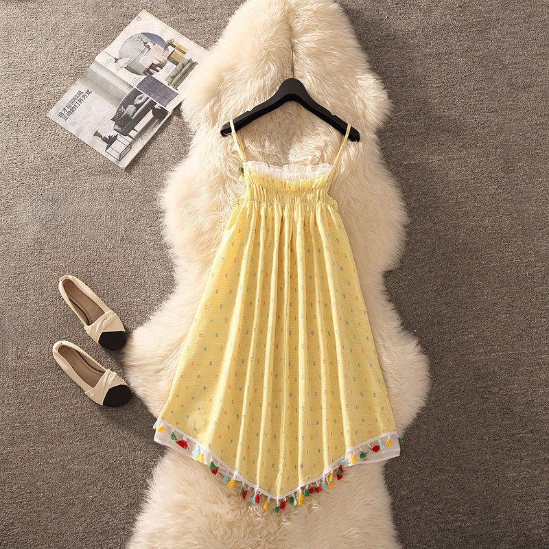 法式黄色吊带连衣裙女夏2026新款小个子海边度假性感夏日漂亮短裙