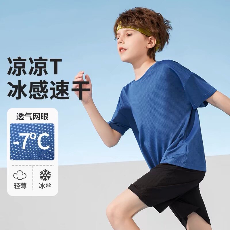 男童短袖速干t恤儿童夏季透气网眼运动上衣女中大童夏装定制LOGO