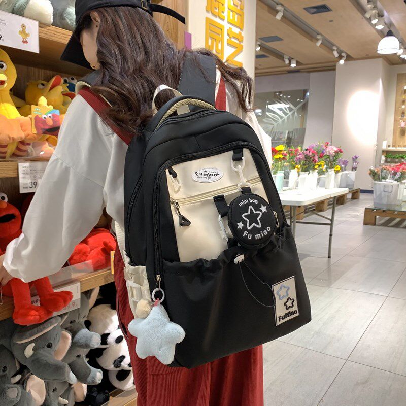 耐脏书包初中女生黑色双肩包女大容量高中生学院风女孩背包高颜值