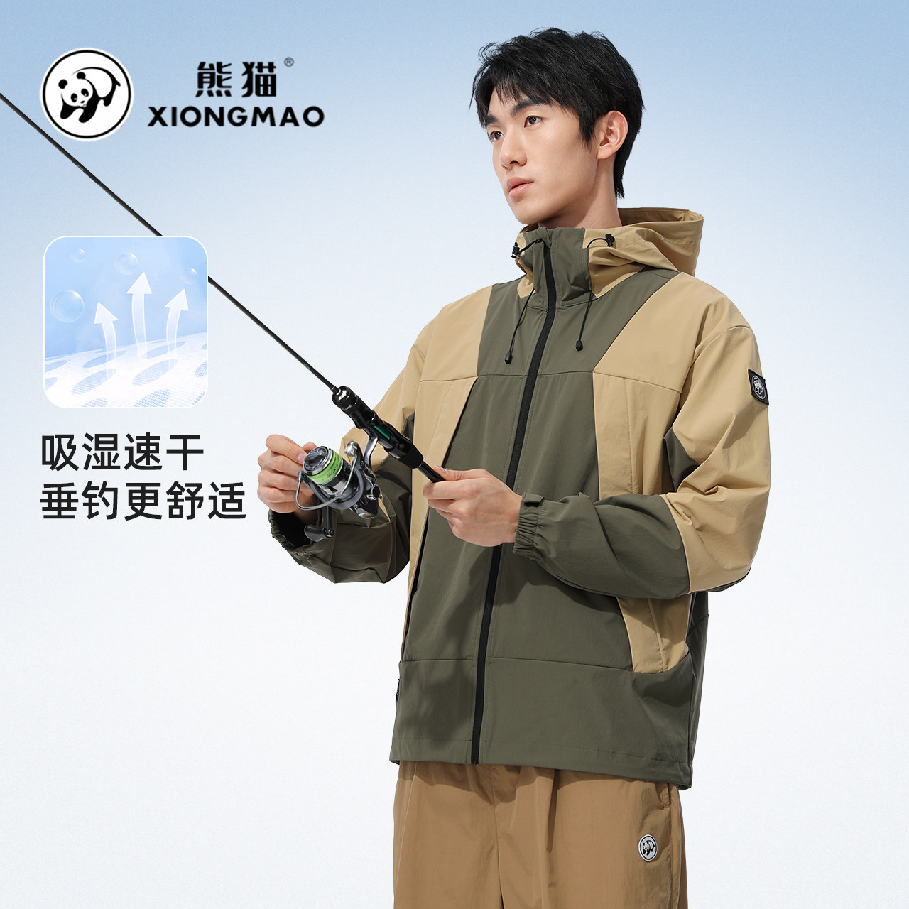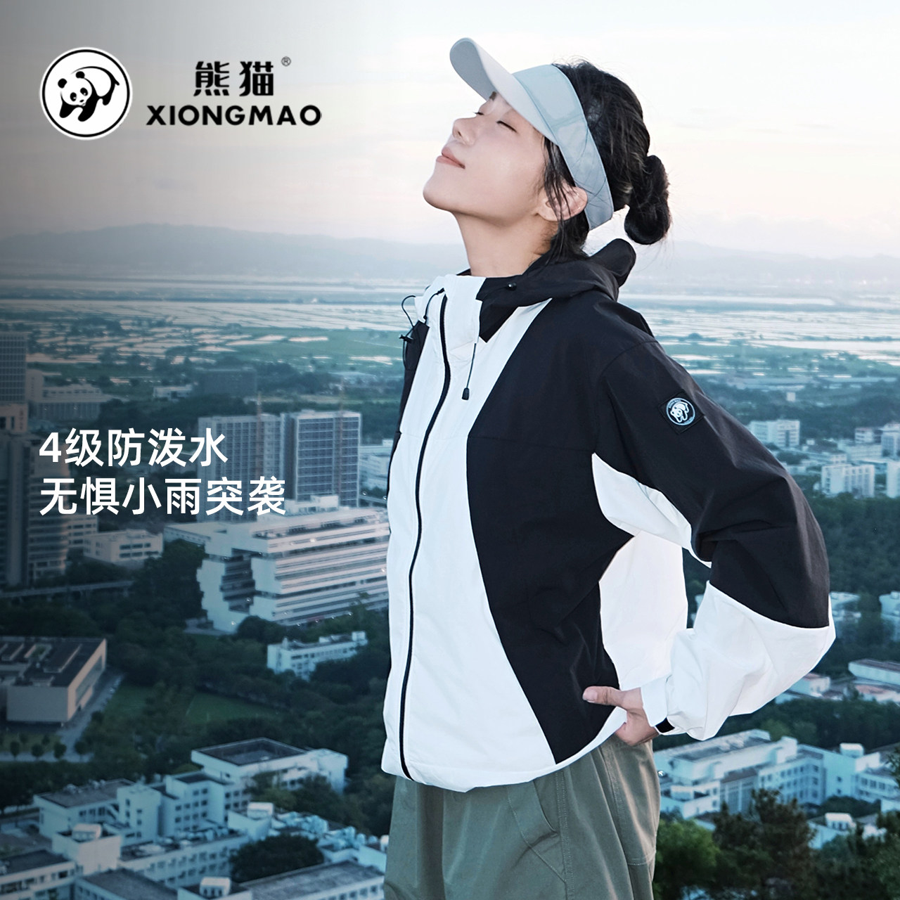 熊猫骆驼时尚撞色休闲外套男女款2026年春秋新款连帽宽松百搭风衣