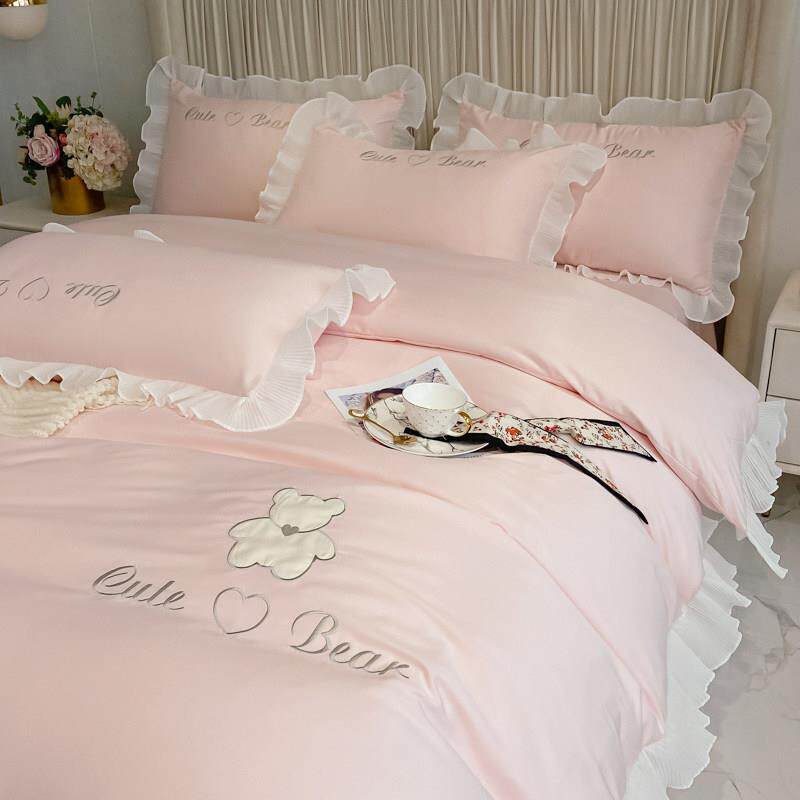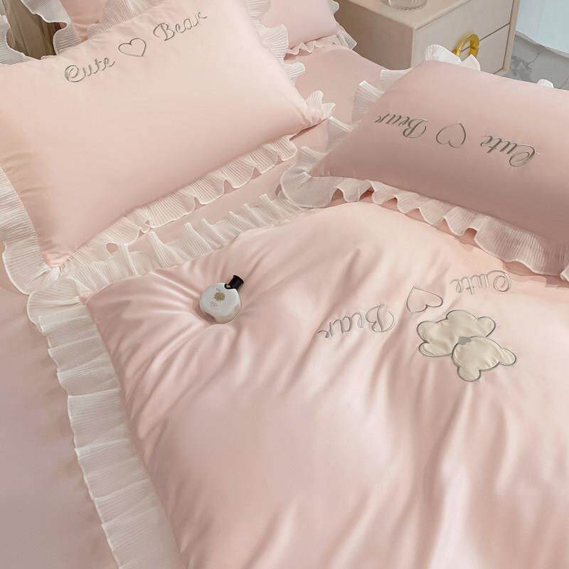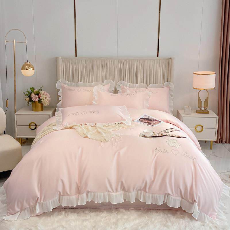 冰丝四件套夏季公主风轻奢高级感床品床上床笠床单裸睡被套三件套
