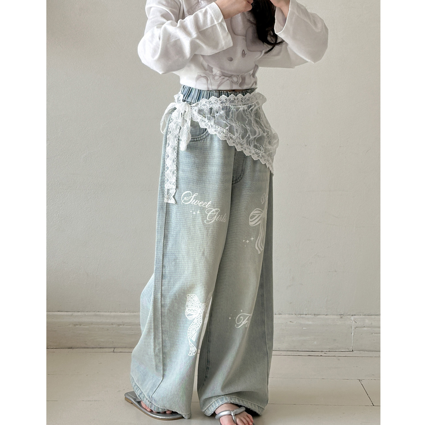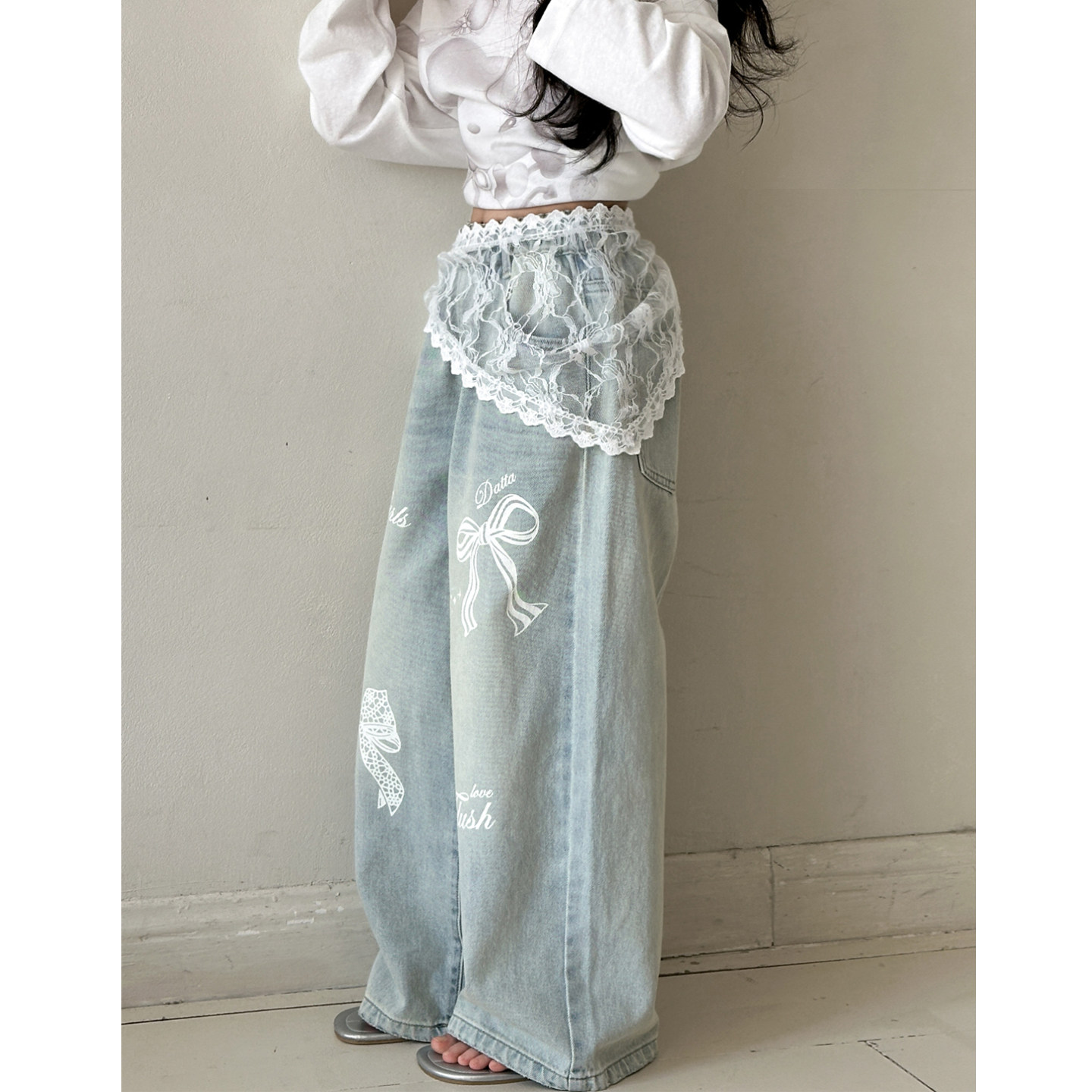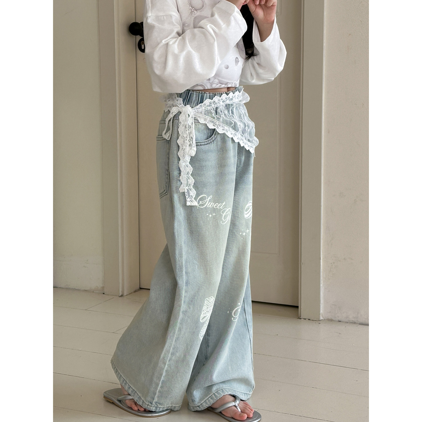 女童裤子春秋款2026新款初中生春装宽松牛仔裤女大童超好看休闲裤