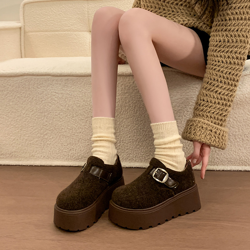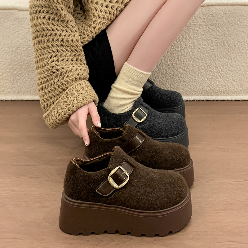 7cm厚底灰色勃肯鞋女鞋2026新款秋冬加绒保暖雪地棉鞋休闲乐福鞋