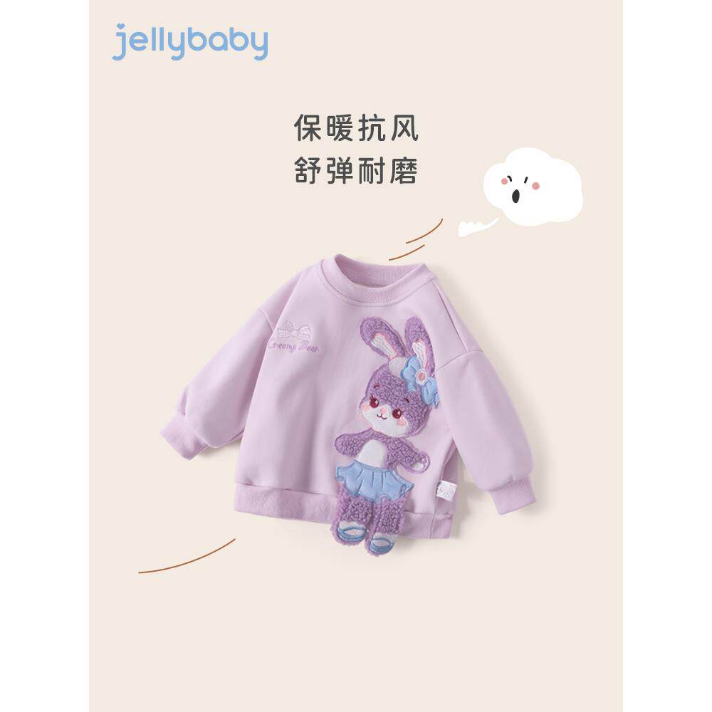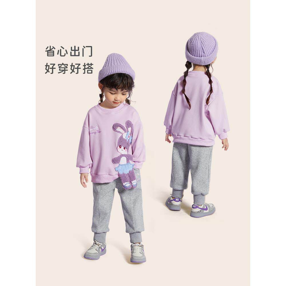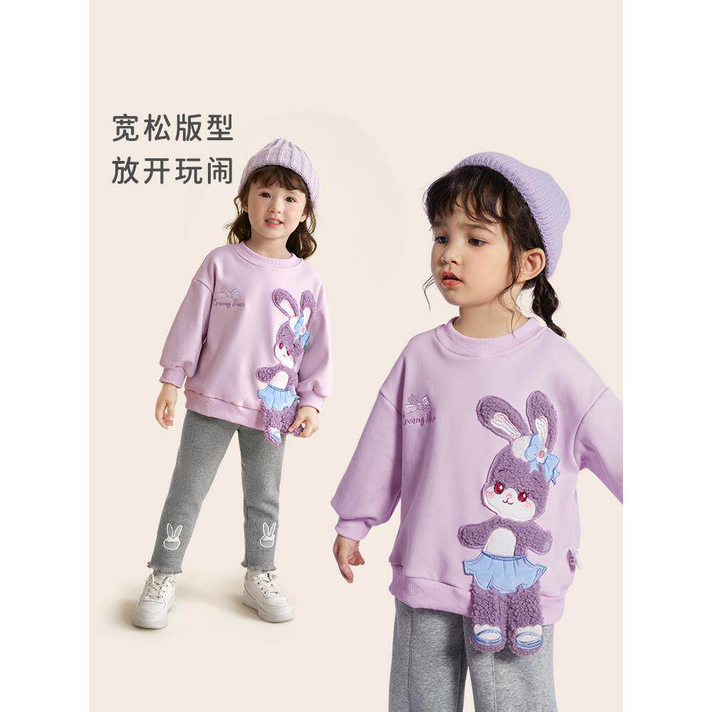[加绒蓄热]女童打底衫小童秋装女孩冬季紫色上衣儿童秋冬新款卫衣