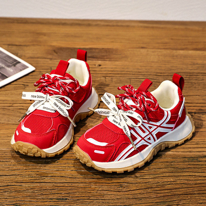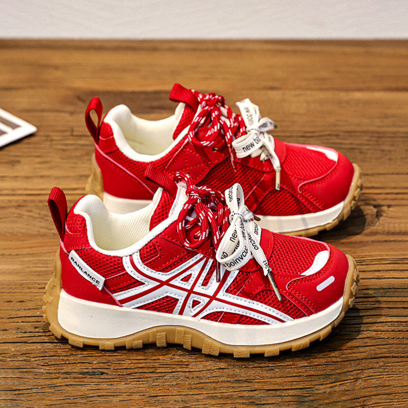 官网C&K女童鞋子红色本命年春季新款儿童运动鞋透气网面老爹网鞋