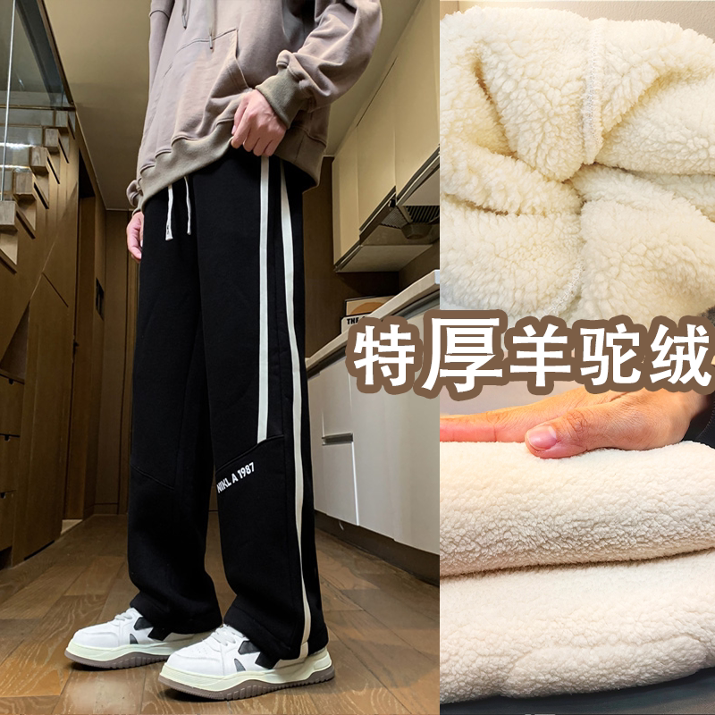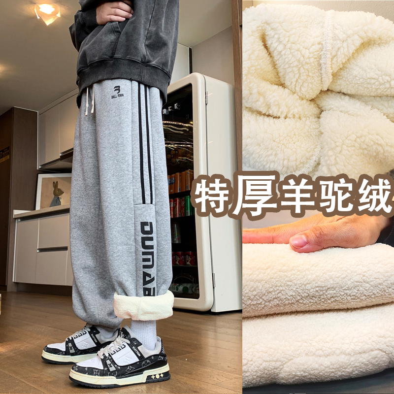 羊驼绒长裤子男孩冬季新款初中学生加绒青少年加厚大童休闲男装士
