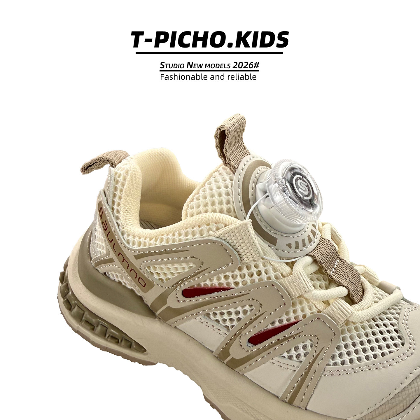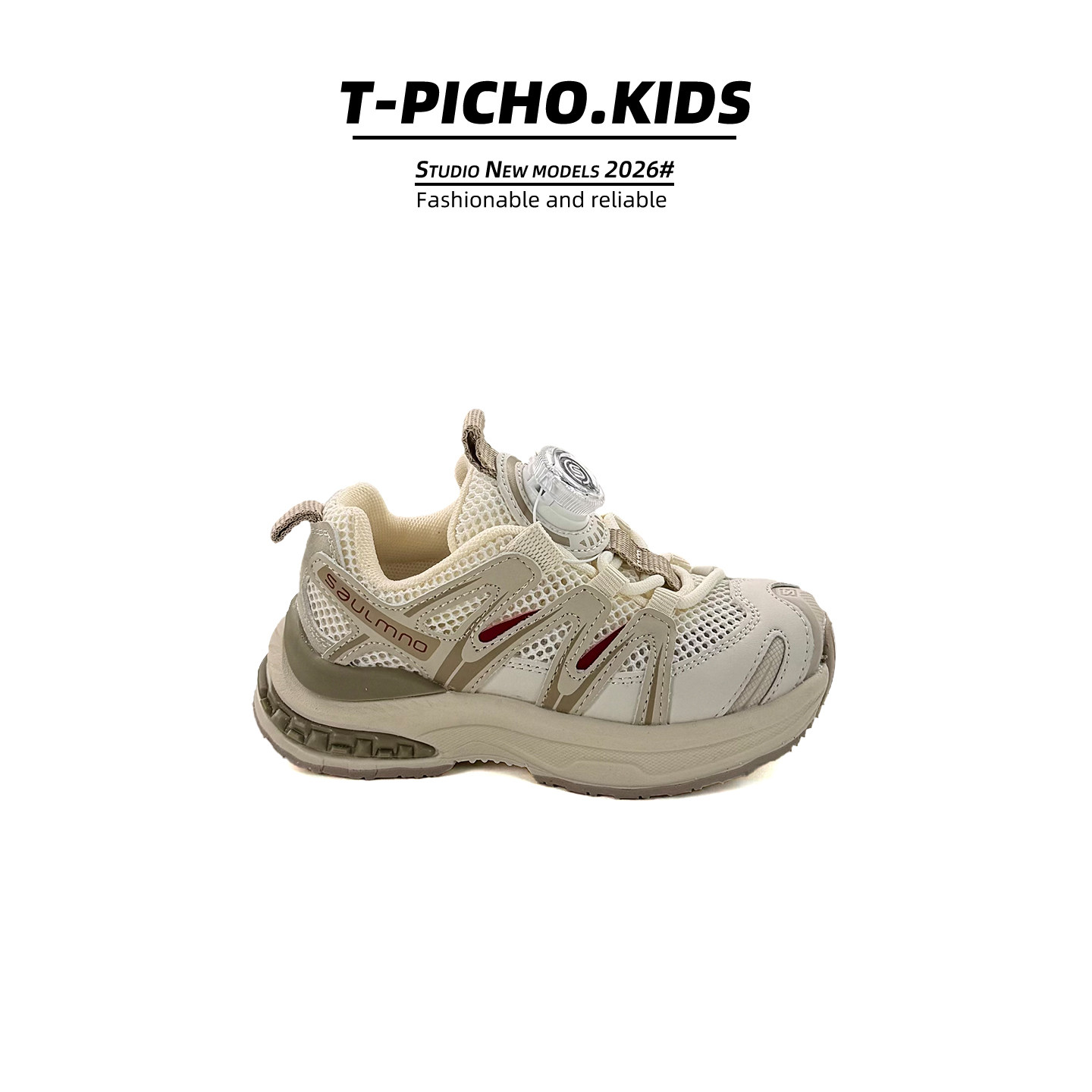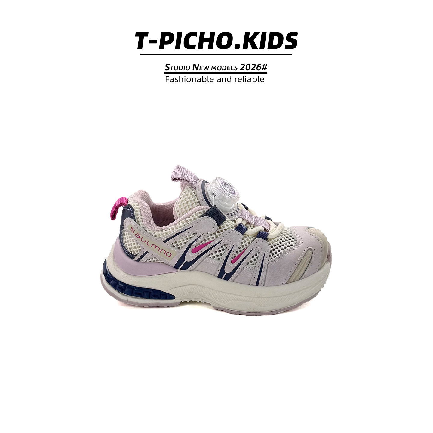 儿童旋钮扣运动鞋2026春秋季新款拼接机能风老爹鞋男童女童休闲鞋