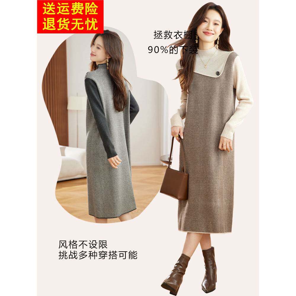 配大衣的毛衣内搭针织连衣裙女秋冬中长款打底衫高级感假两件裙子