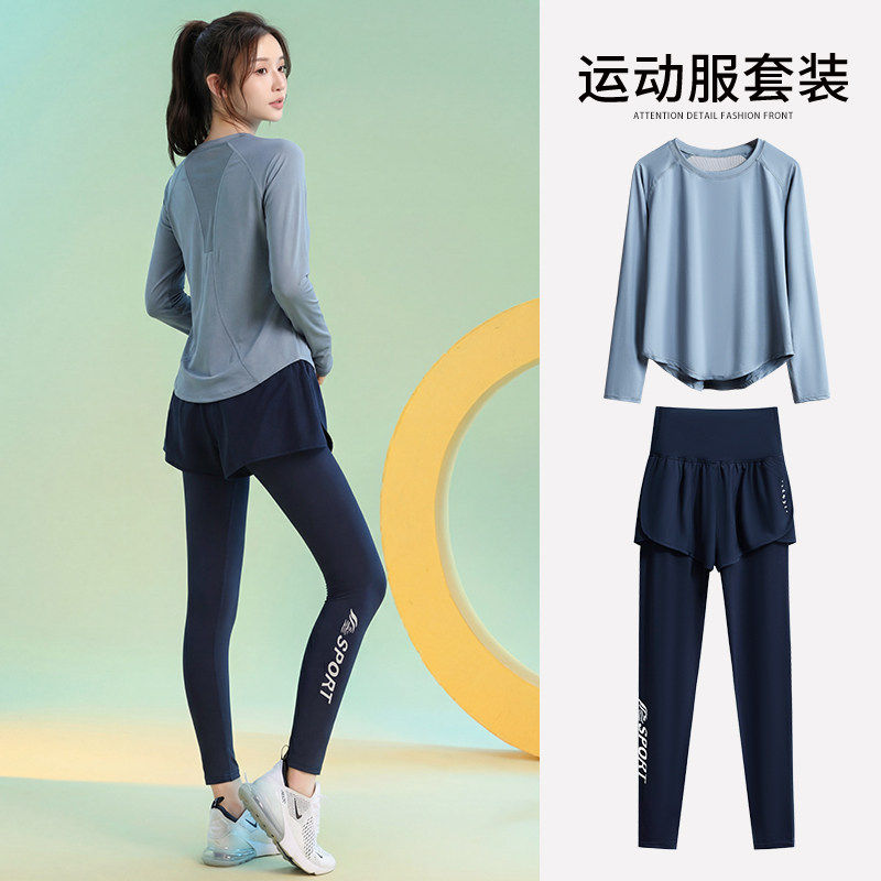 马孔多官方运动速干衣女套装秋冬薄款透气长袖瑜伽服上衣宽松显瘦