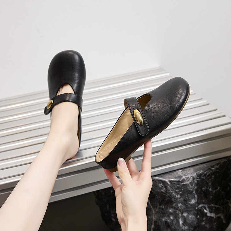 凉鞋女2025夏季玛丽珍女鞋新款一脚蹬平底法式配裙子包头半拖女