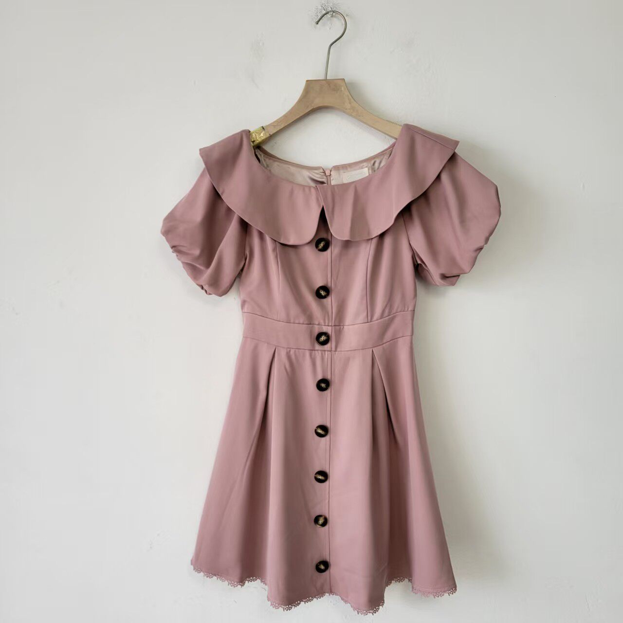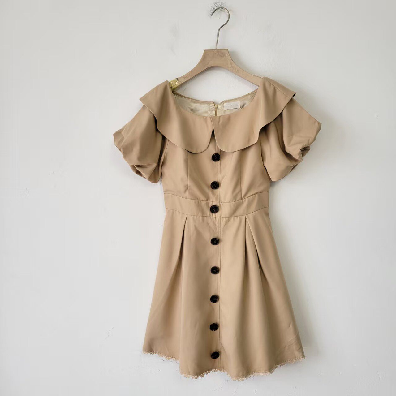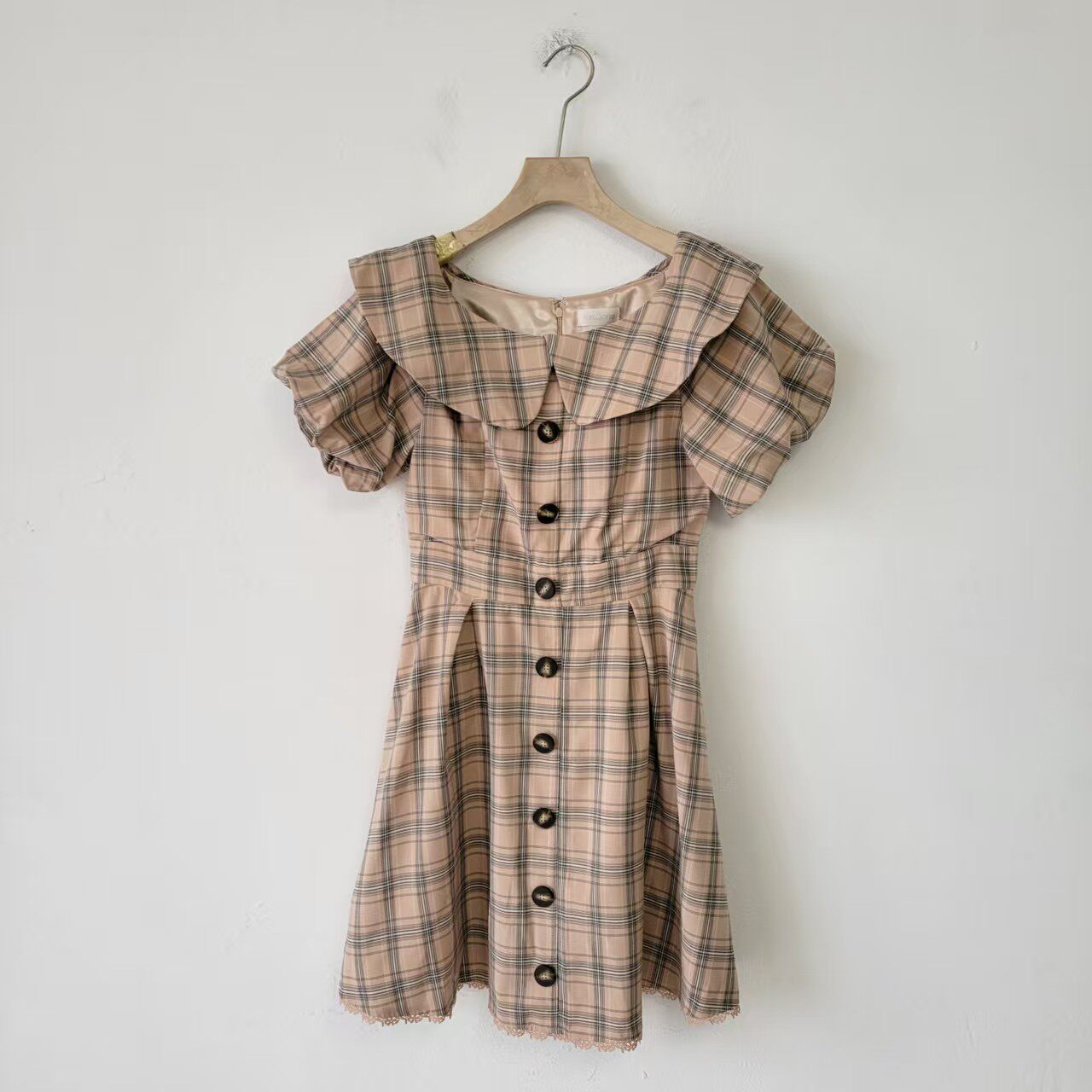 1W日单夏季学院风格子小个子连衣裙女中长款收腰荷叶边袖显瘦裙子