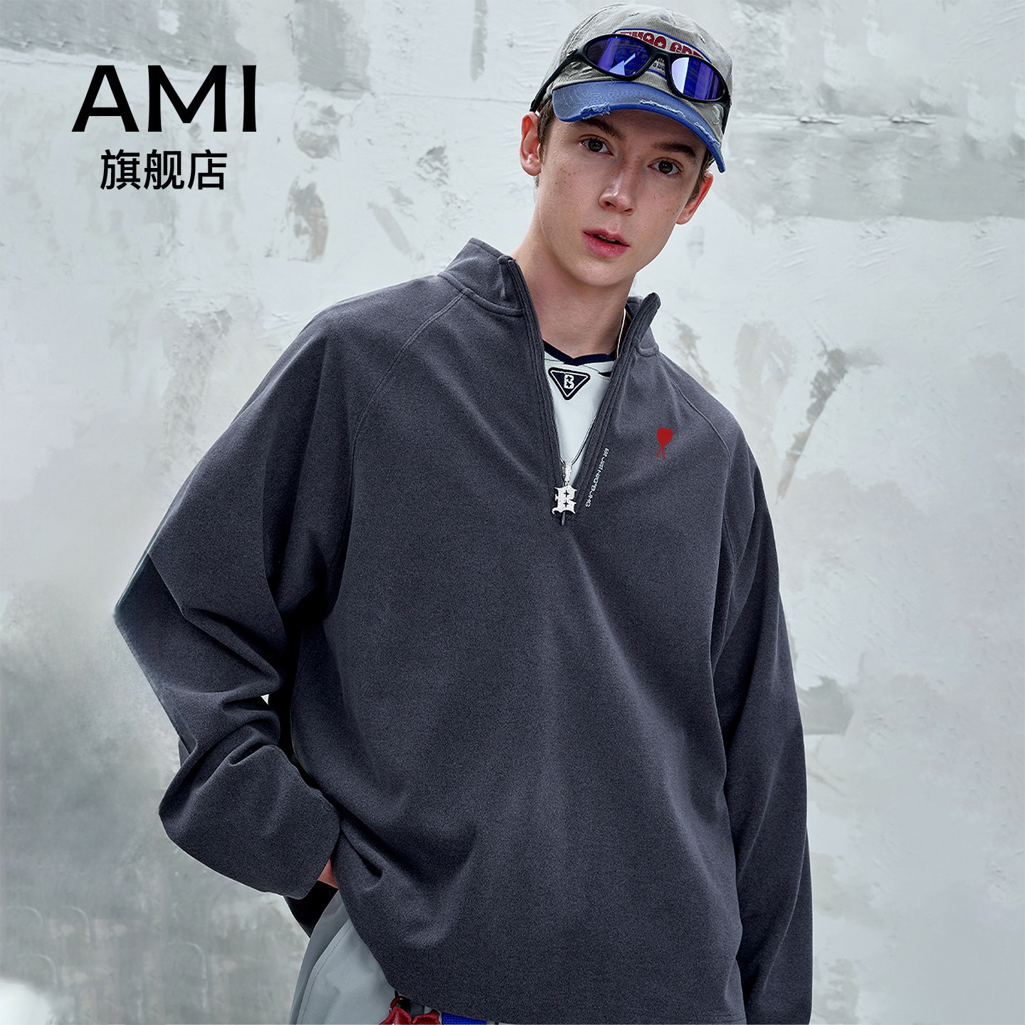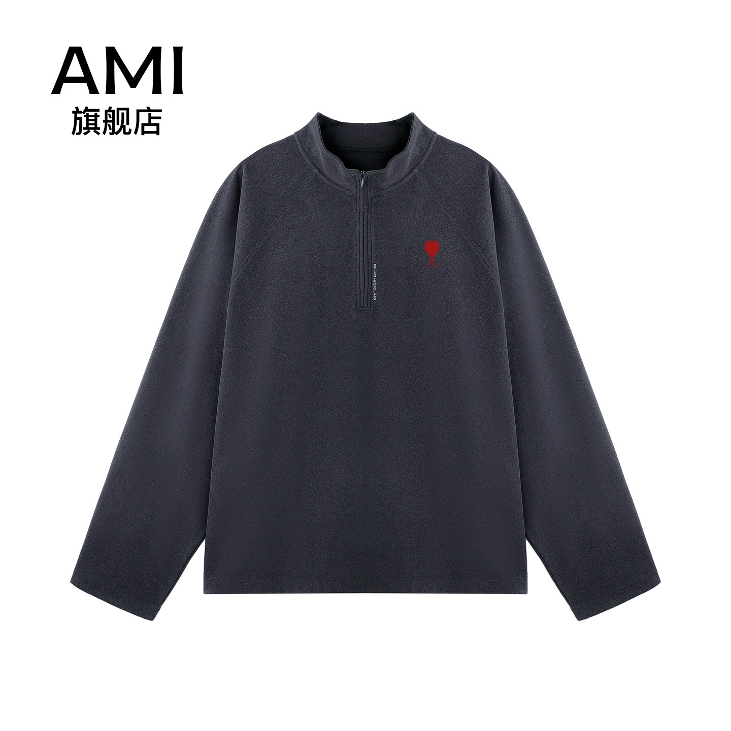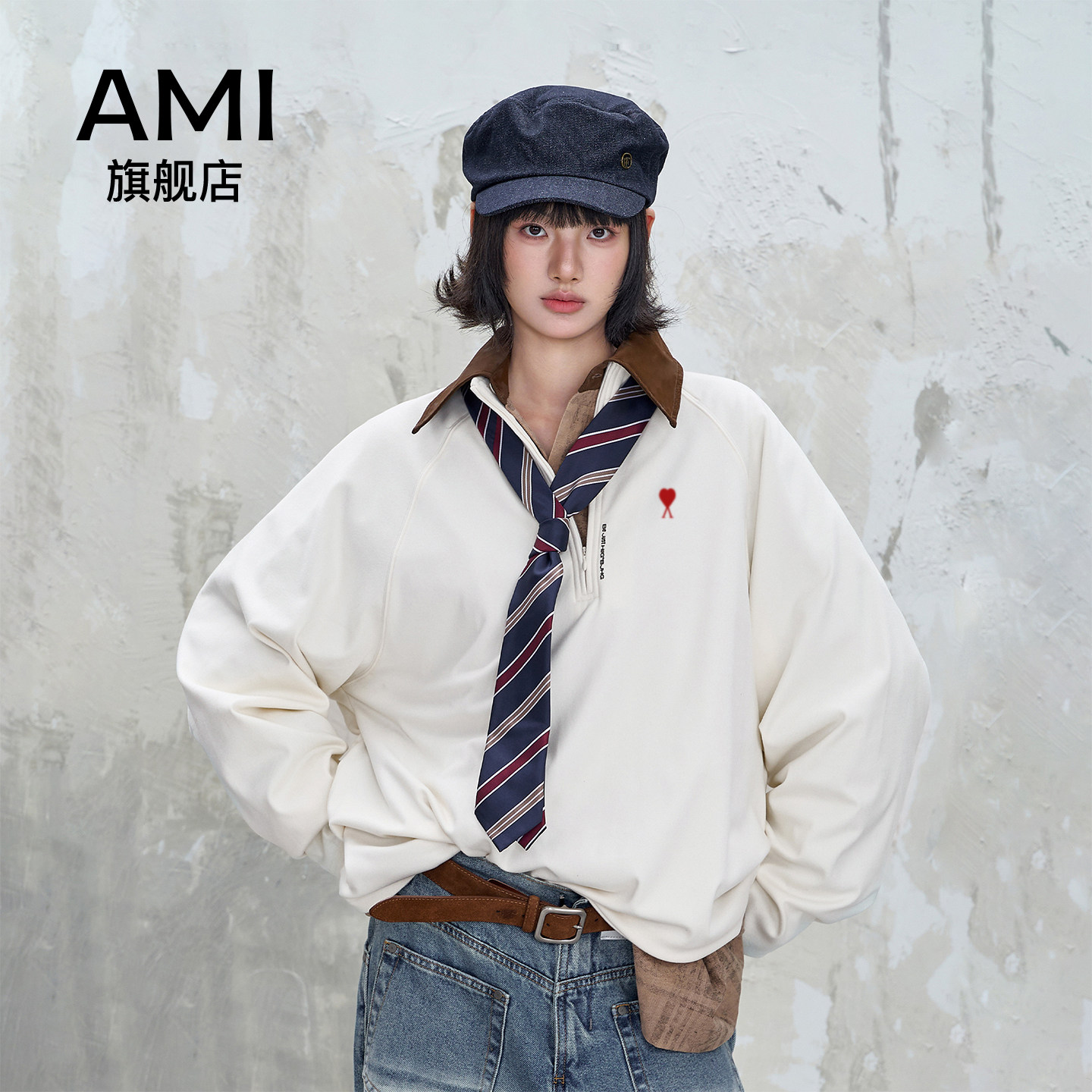 AMI官方新年2026新款长袖t恤女款春季红色打底衫内搭德绒内胆上衣