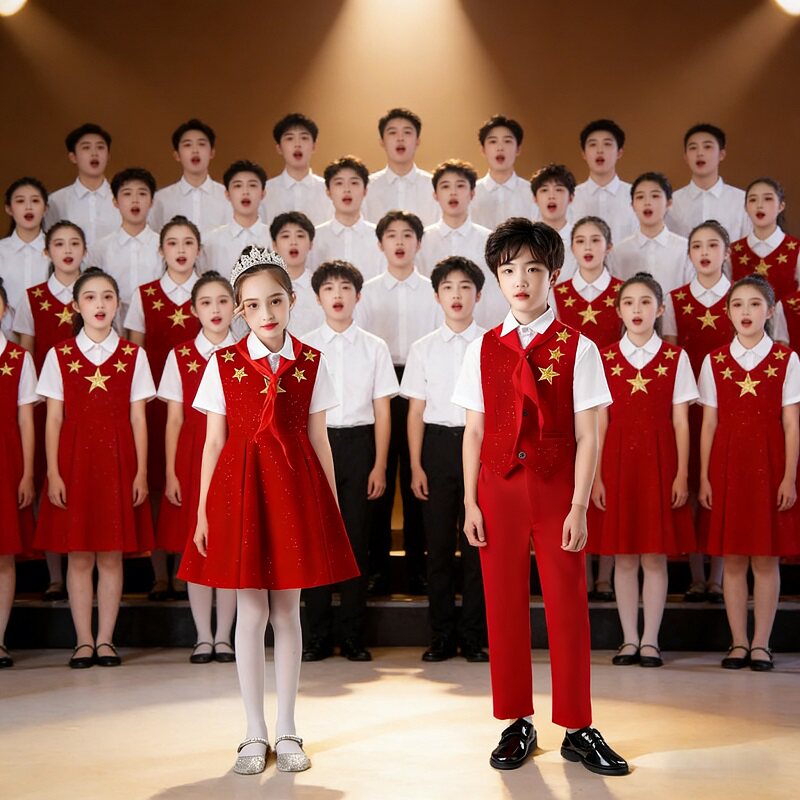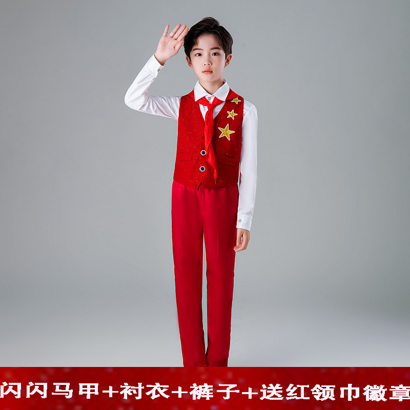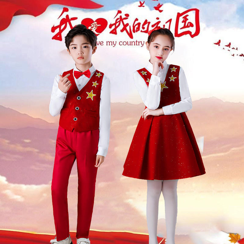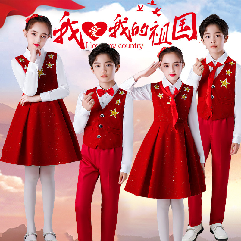 儿童合唱朗诵演出服六一小学生爱国红色歌主题演讲比赛中国风女童