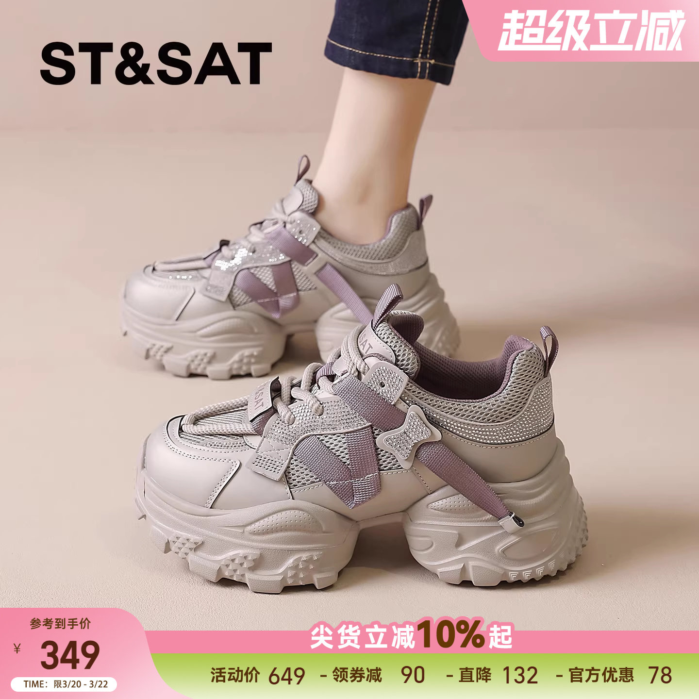 星期六紫色老爹鞋女款新款运动鞋增高鞋厚底休闲鞋子夏季透气百搭