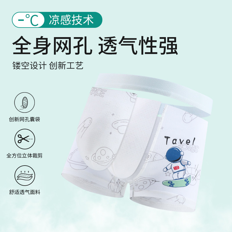 男童平角内裤夏季冰丝全棉a类四角裤男孩儿童中大童纯棉网眼短裤