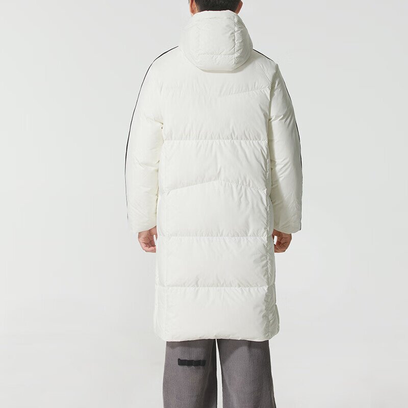 adidas 保暖连帽条纹中长款鸭绒羽绒服 男款