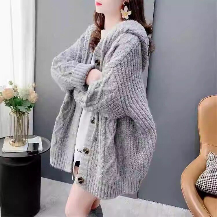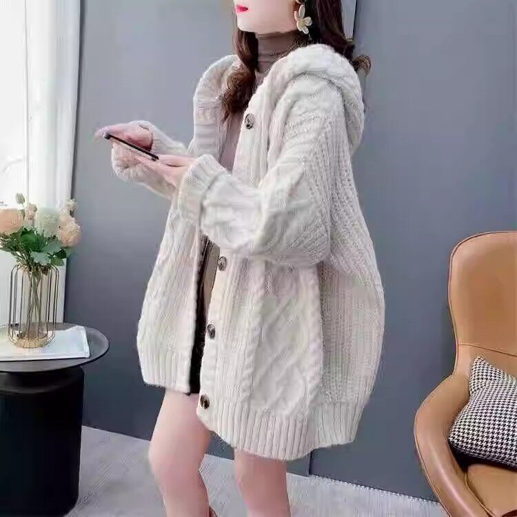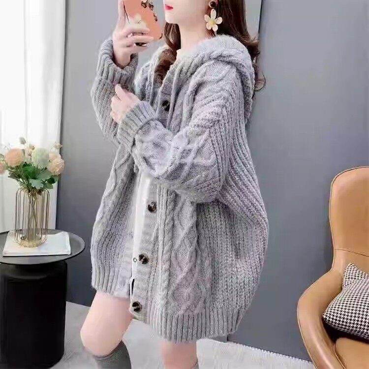 慵懒风加厚毛衣开衫女秋冬季2026新款大码胖mm宽松中长款针织外套