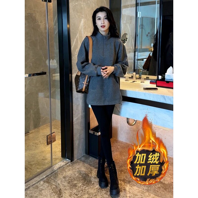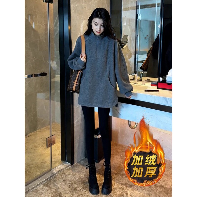 加绒加厚长袖卫衣女2024冬季新款洋气宽松中长款立领休闲上衣外套