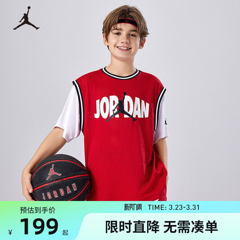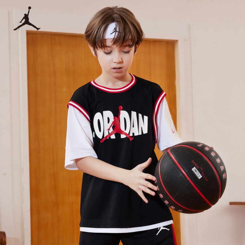 Jordan乔丹儿童装男童篮球运动T恤大小童假两件上衣短袖JD2322033