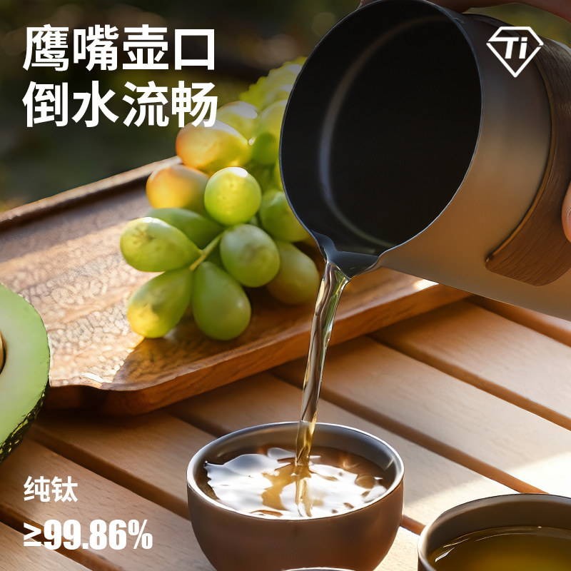 纯钛户外快客杯露营便携式鹰嘴泡茶器家用一壶四杯旅行茶具套装