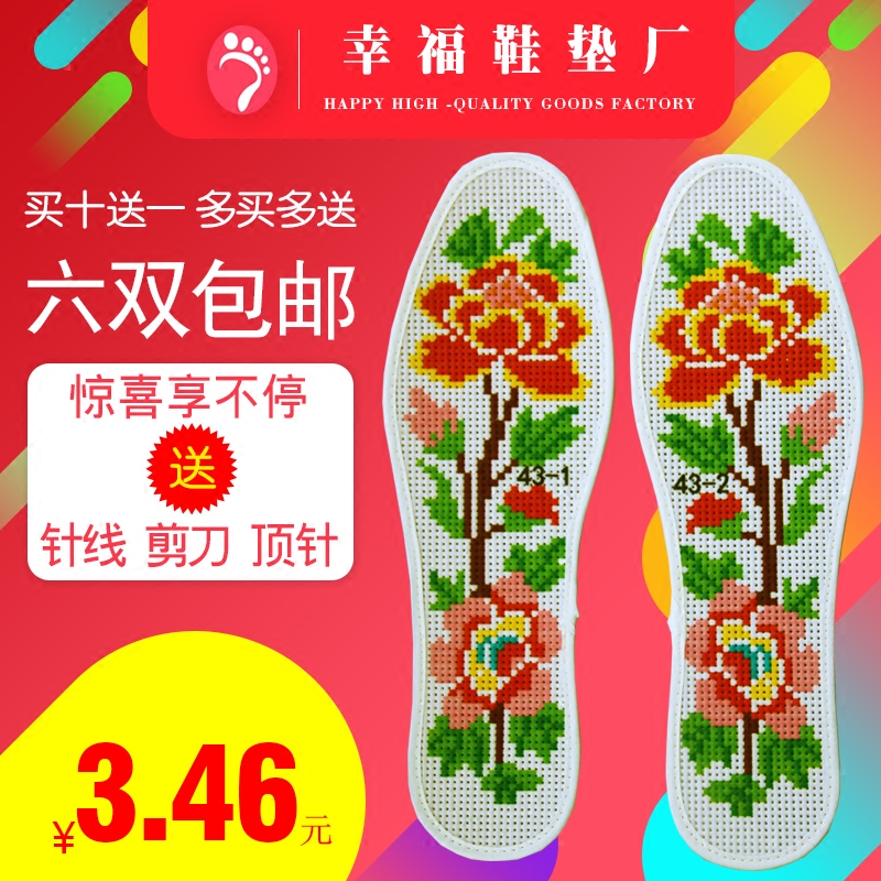 47码结婚用包邮十字绣鞋垫半成品吸汗纯棉布男女喜庆保暖运动新款