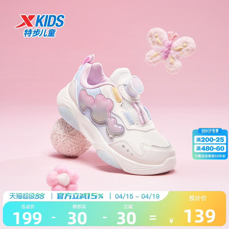 特步儿童2026新款夏季女童鞋旋转钮扣女孩宝宝休闲鞋软底运动鞋