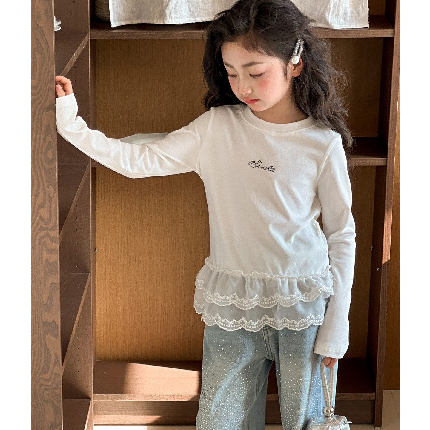 女童长袖T恤春装2026新款女大童荷叶边打底衫初中生韩系女孩上衣