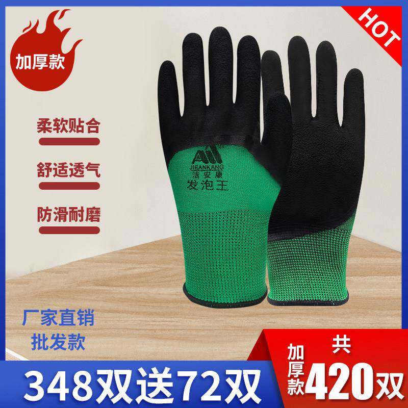 劳保手套防滑耐磨工作加厚男橡胶乳胶发泡王防水透气工地干活不烂