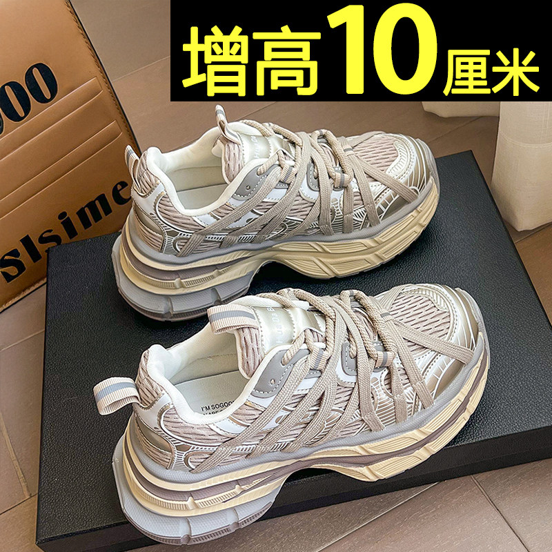 厚底银色老爹鞋女2026新款春季百搭不累脚10cm内增高休闲鞋运动鞋