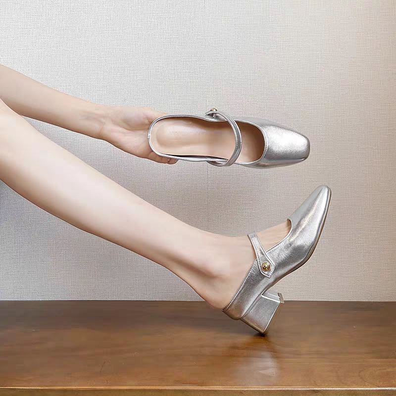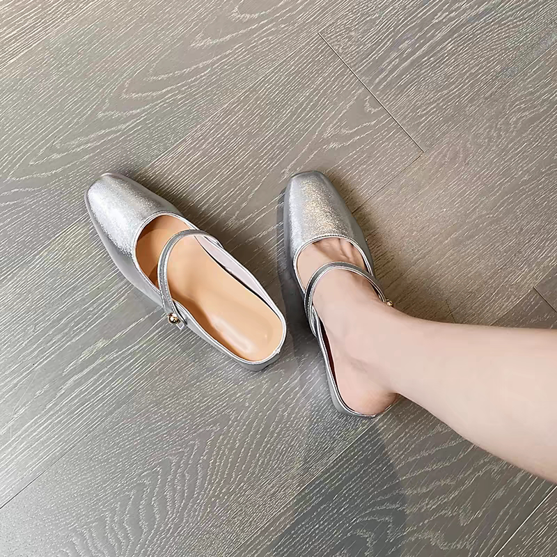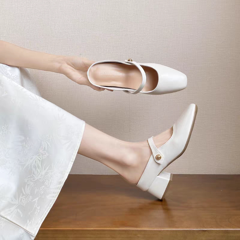 内增高凉拖女外穿小个子高跟鞋超软羊皮包头半拖鞋玛丽珍鞋小码33