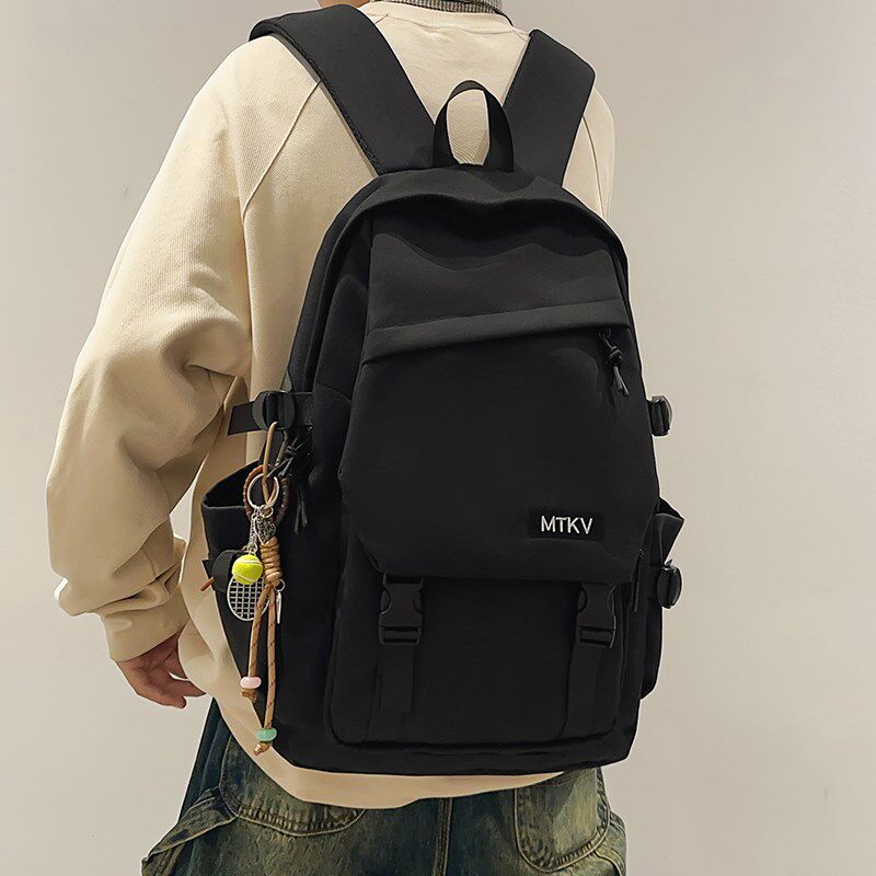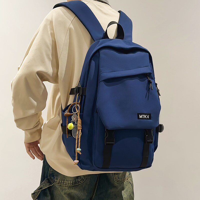 双肩包女初中生纯色百搭大容量书包高中生大学生通勤电脑旅行背包