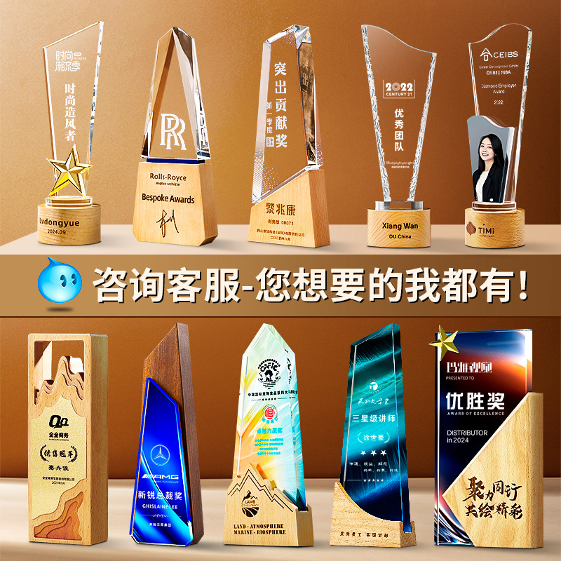 水晶奖杯定制奖牌免费刻字颁奖年会比赛活动纪念礼品五角星大拇指