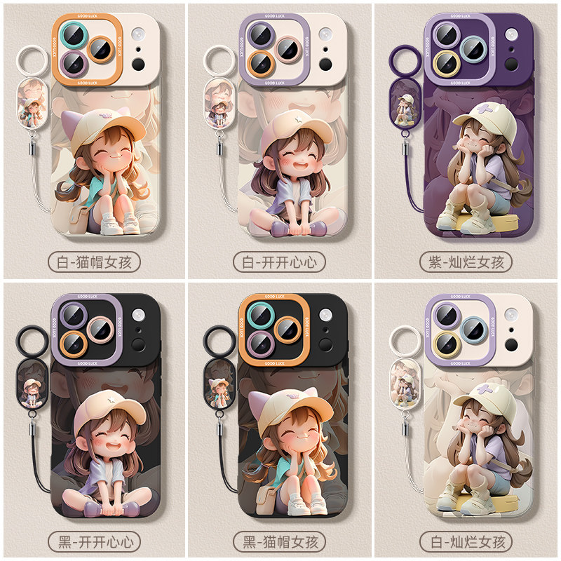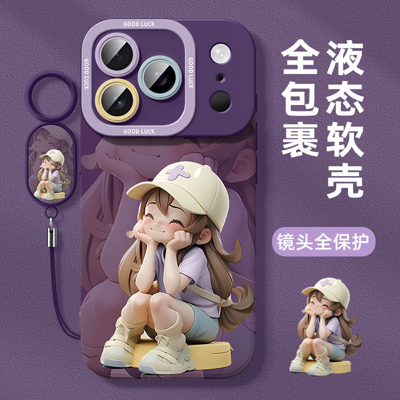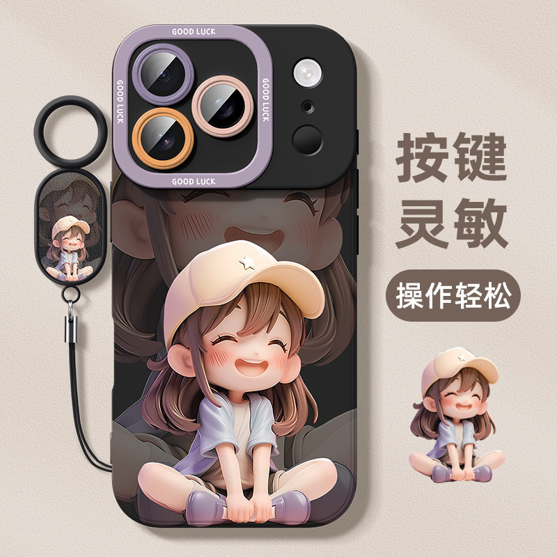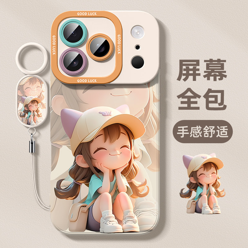 适用于苹果17pro手机壳2025女款iphone17promax新款带挂绳ip17max全包防摔高级感17air软硅胶保护套猫帽女孩