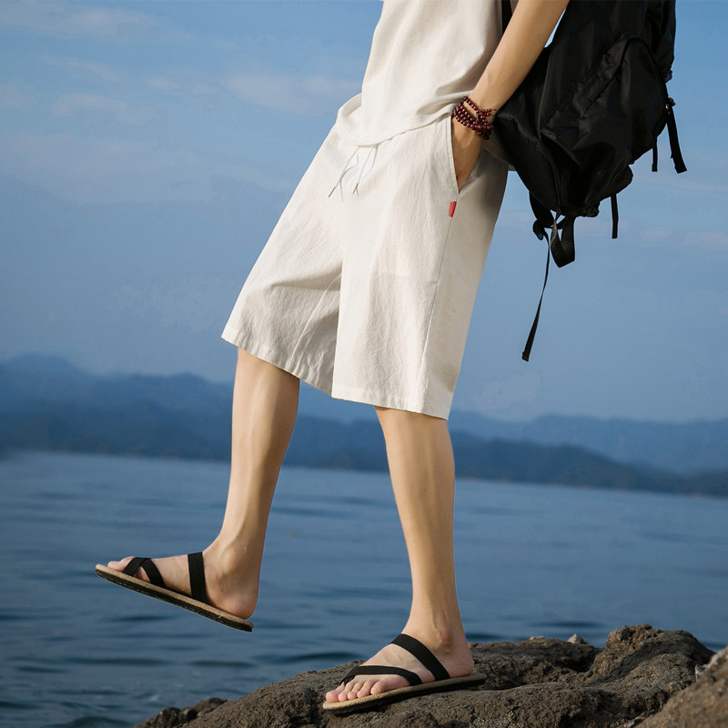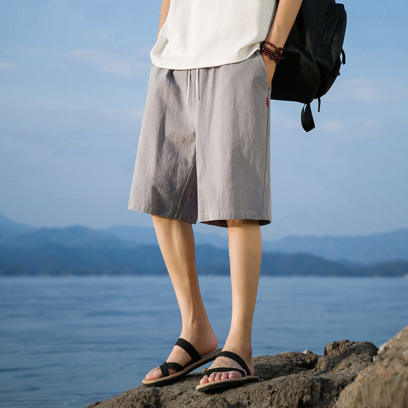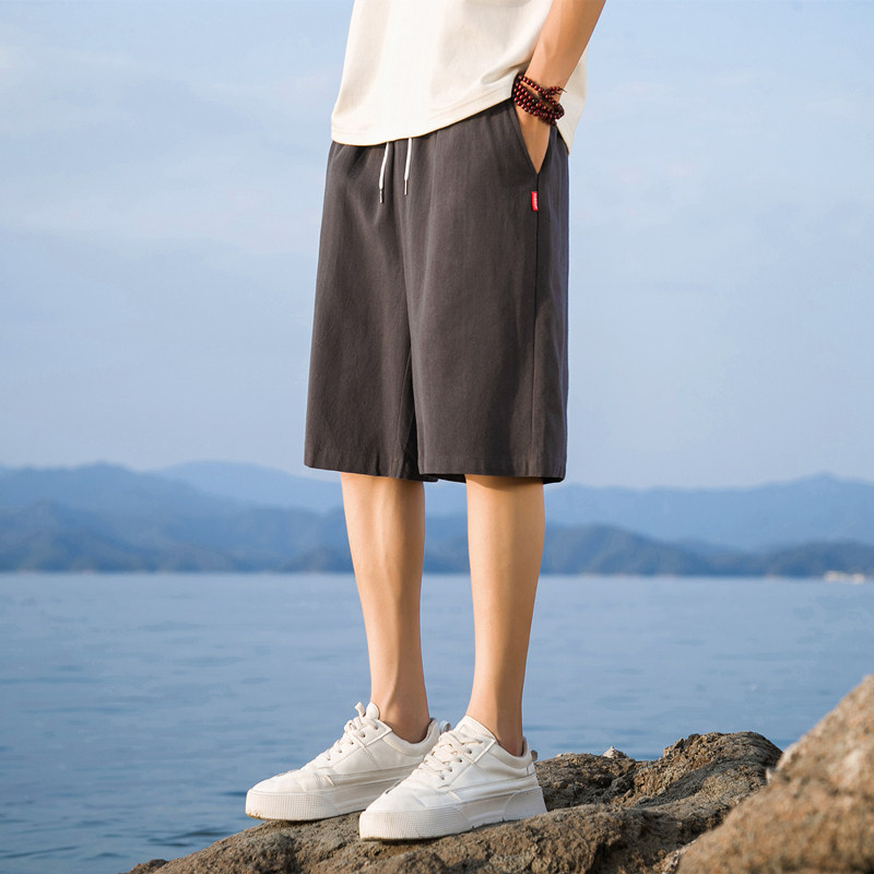 冰丝亚麻裤子男款五分休闲短裤夏季薄款潮牌5分宽松速干潮牌中裤