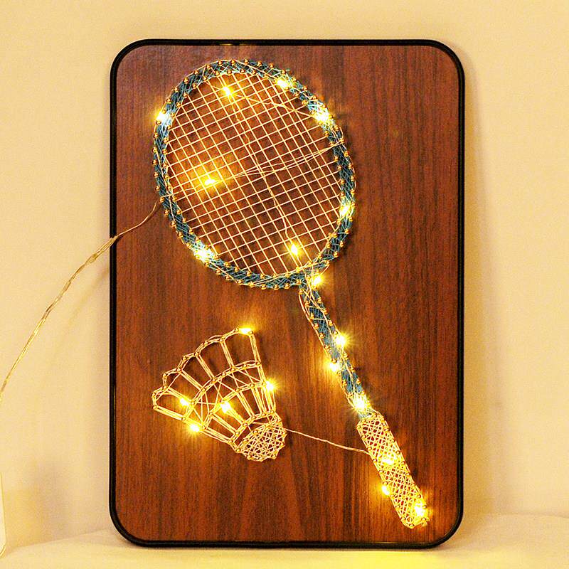 定制羽毛球拍钉子绕线 线画 画手工diy制作 羽毛球材料包送情侣闺