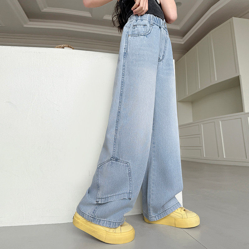 女童裤子2025薄洋气直筒阔腿裤中大童儿童牛仔裤夏季童装春夏新款